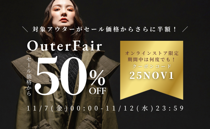 対象アウターがセール価格からさらに半額!【クーポンコード:25NOV1】※ご利用方法