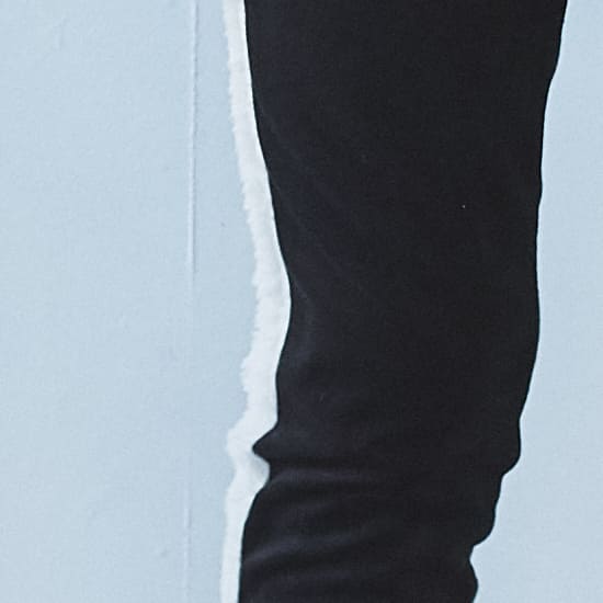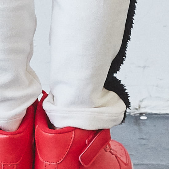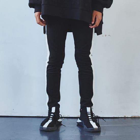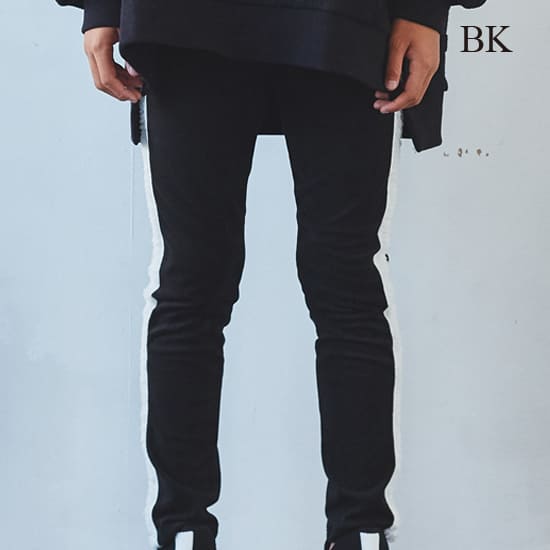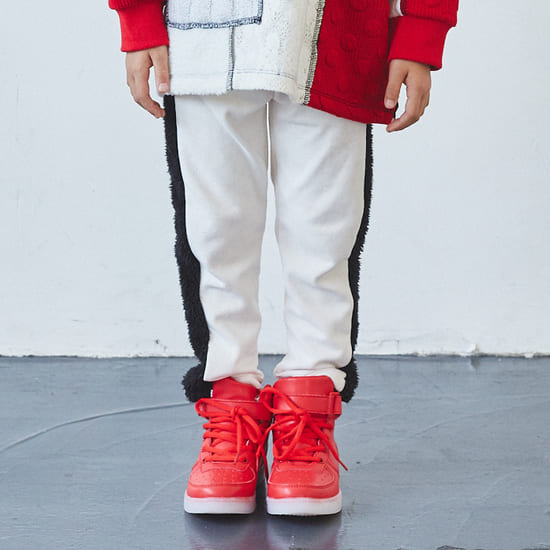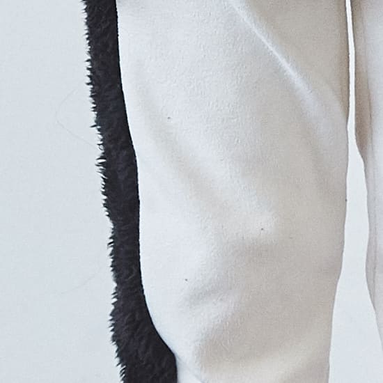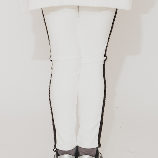 ストレッチが入ったスエード調の履きやすいレギンスボトムスは、すっきりとしたシルエットなので一枚でも履いても、スカートやワンピースに合わせるレギンスとしても活躍します。トップスにはボリュームのあるアイテムを合わせるとおしゃれにスタイリングすることができます。色展開は白地に黒ラインが入った「オフホワイトxブラック」、黒地に白ラインが入った「ブラック」の2色展開です。