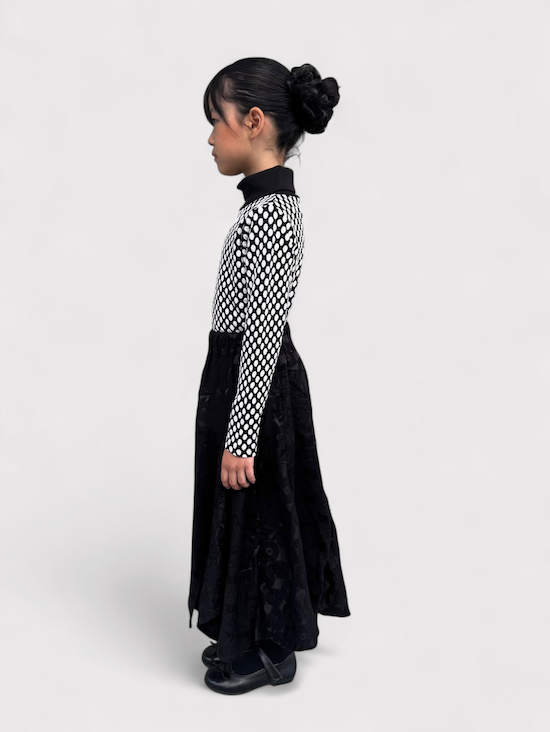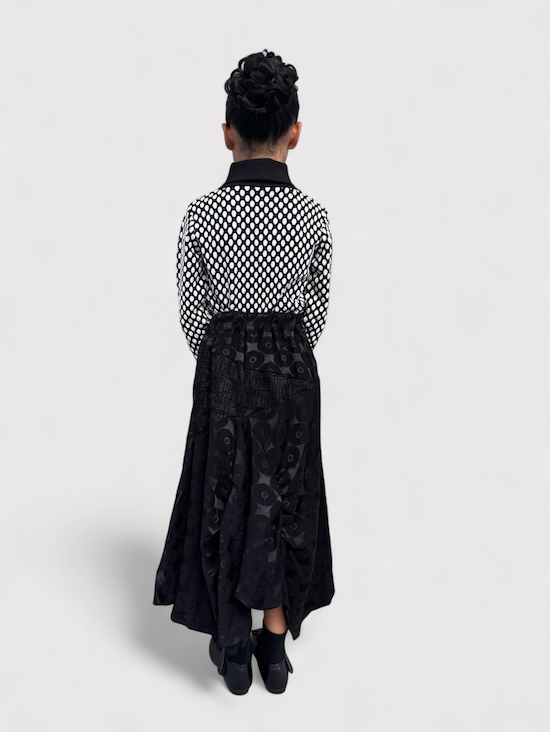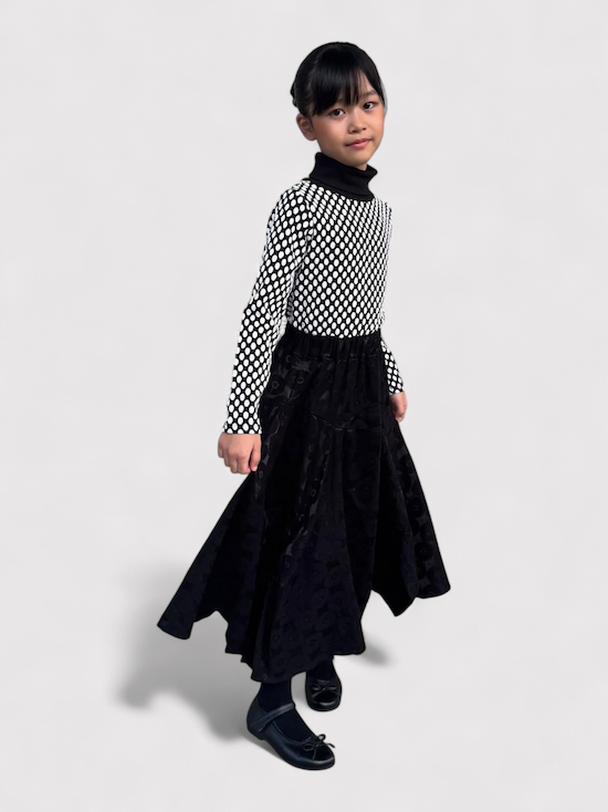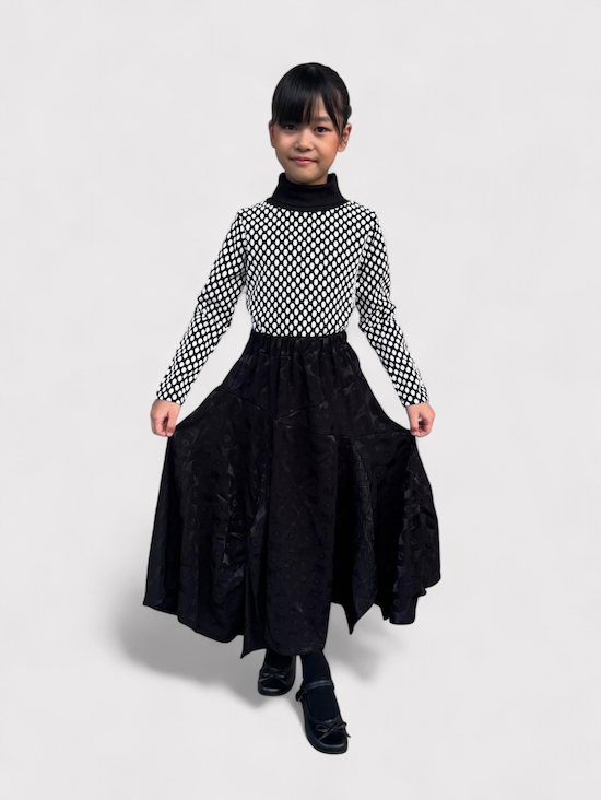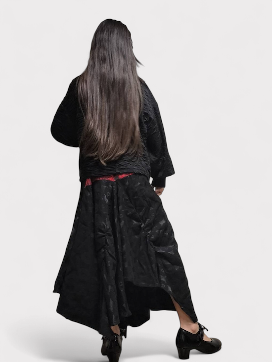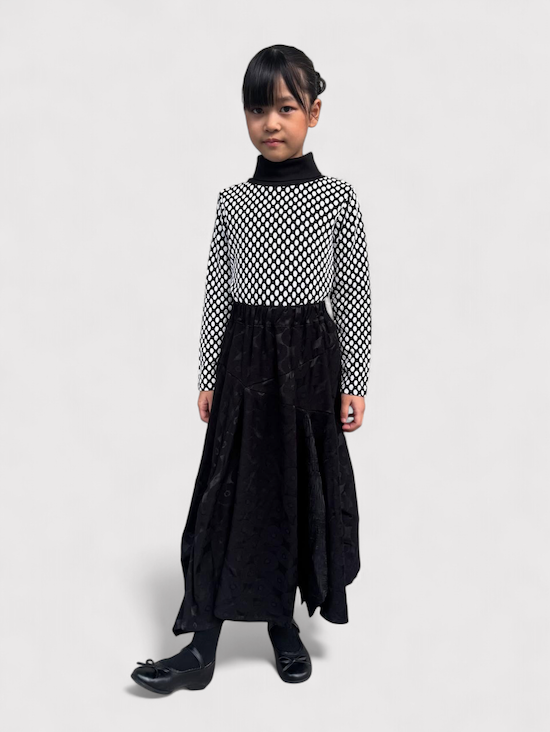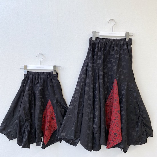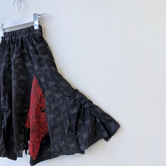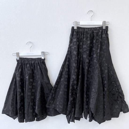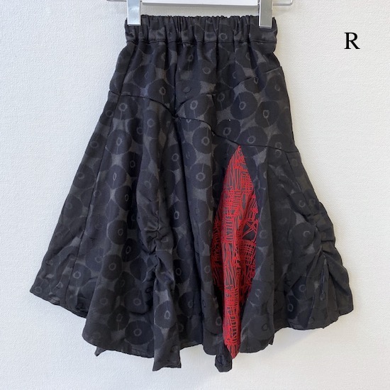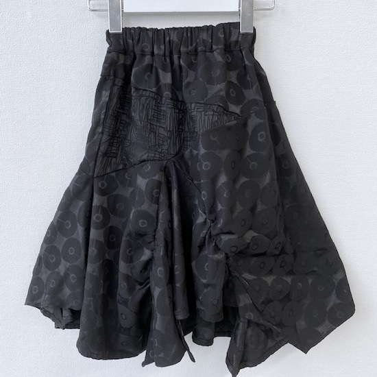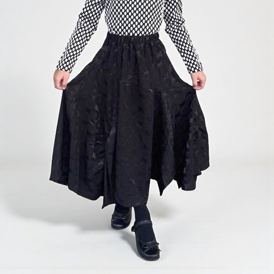 異なる柄のサテンジャガード生地を贅沢に切り替えられたデザインとこだわりのアシンメトリーシルエットが魅力のアシンメトリースカート。ウエストは総ゴムで履き心地の良さも魅力です。動く度に揺れるヘムラインが体型カバーはもちろん、足元を綺麗に魅せてくれる優秀アイテムです。シンプルなトップスに合わせてもこなれ感がグッとアップする優秀アイテムです。