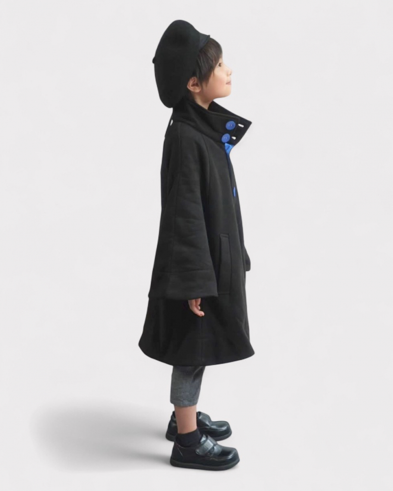 スエード調素材のポンチョコートの登場です。動きの自由なポンチョスタイルは個性が感じられる1枚に。裏はあたたかな柔らかなボア素材。ゆとりのあるサイズ感なので中に厚手のニットも取り入れやすく、スタイリング次第で長くお使い頂けます。色展開はモードなコーディネートにも活躍する「ブラック」、ワードローブを明るくする「ブルー」の2色展開です。