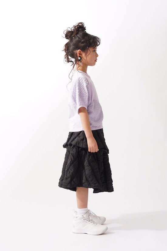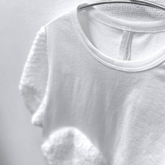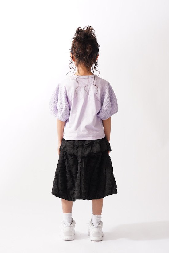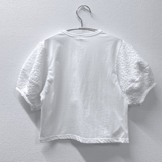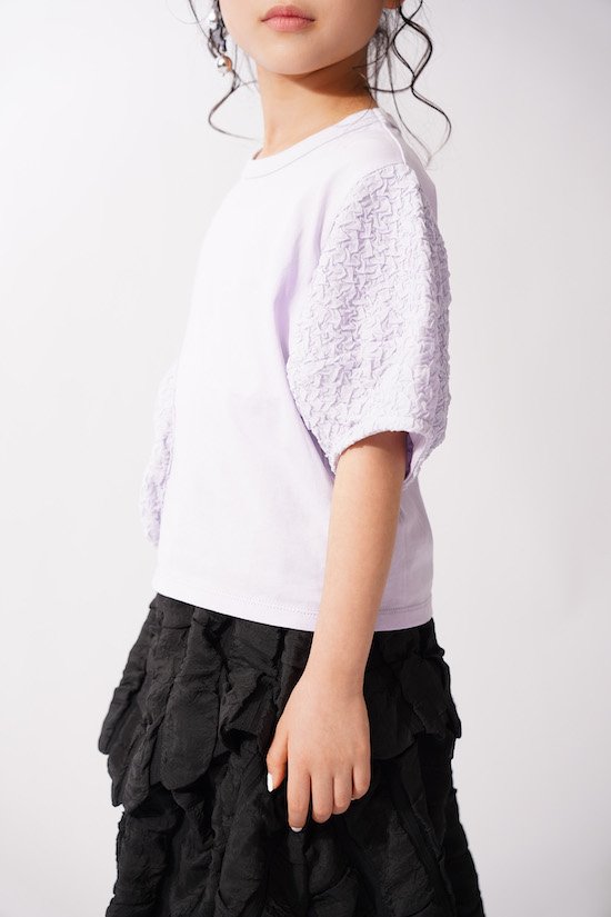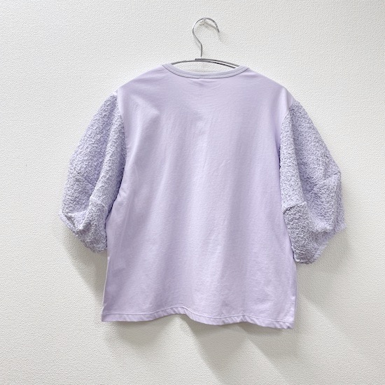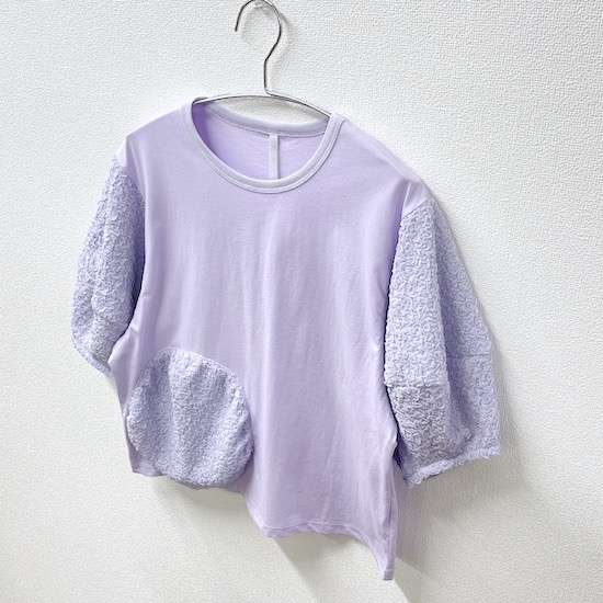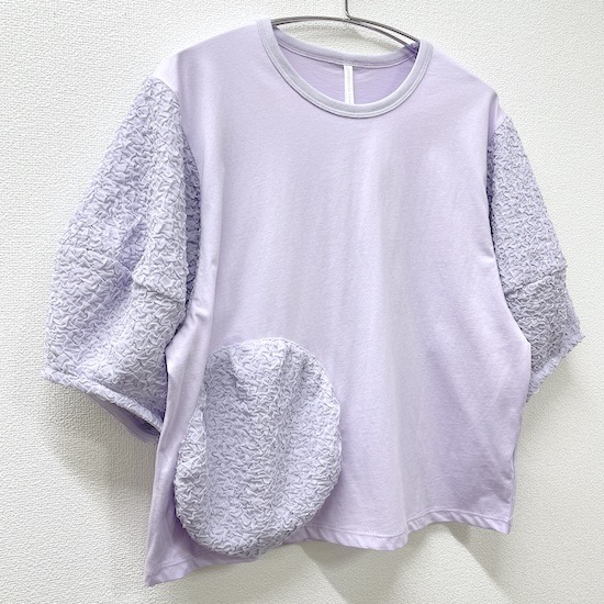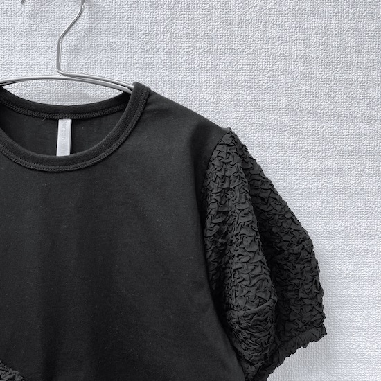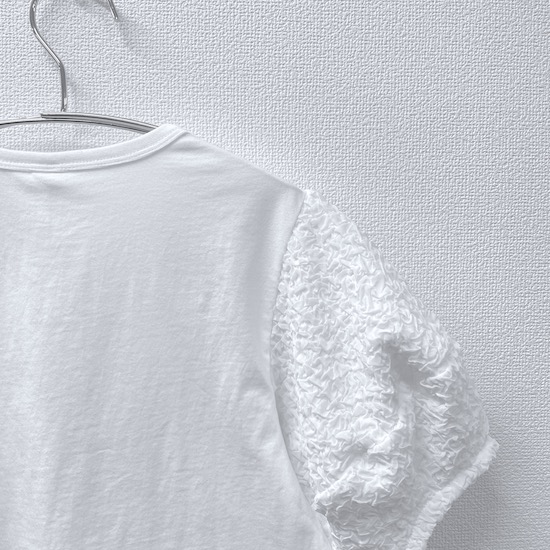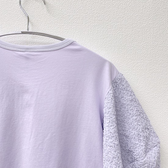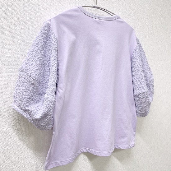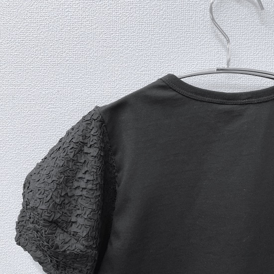袖口にふんわりと丸みを持たせたバルーンスリーブとフロントに立体的に施されたサークルが目を惹く1枚。気になる二の腕カバーにもなる優秀アイテムです♪デイリー使いにピッタリの技ありなデザインTシャツを是非お試し下さい。