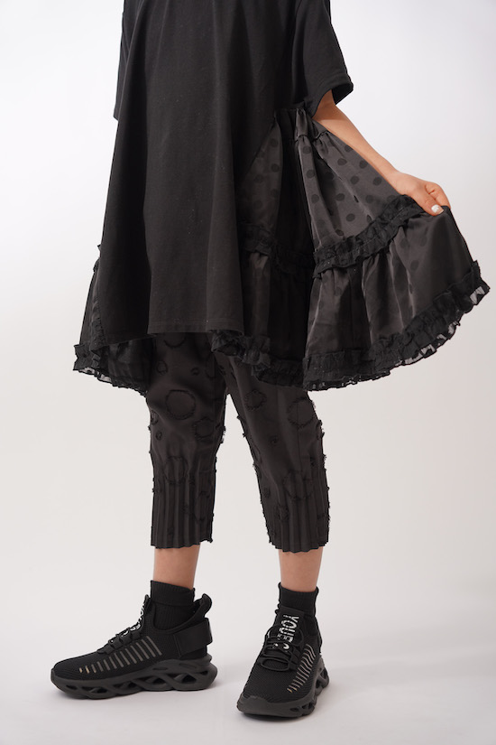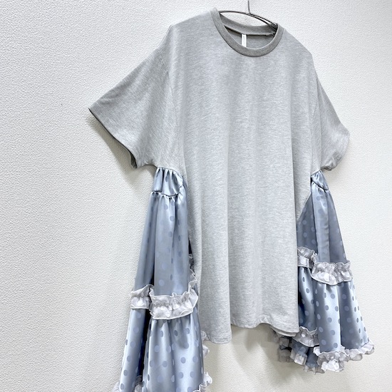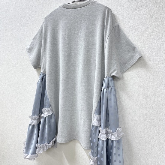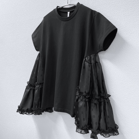 サイドに切り替えたフリルが可愛いフリルチュニックプルオーバー。本体生地は肌触りの良い天竺素材を使用し着心地も◎サイドのさりげないサテンドット生地にフリルを施し、動くたびに揺れるシルエットが可愛い今季イチオシのアイテムです。