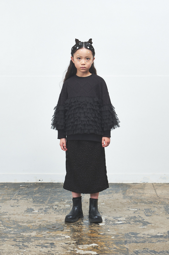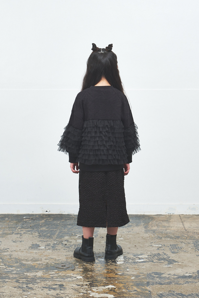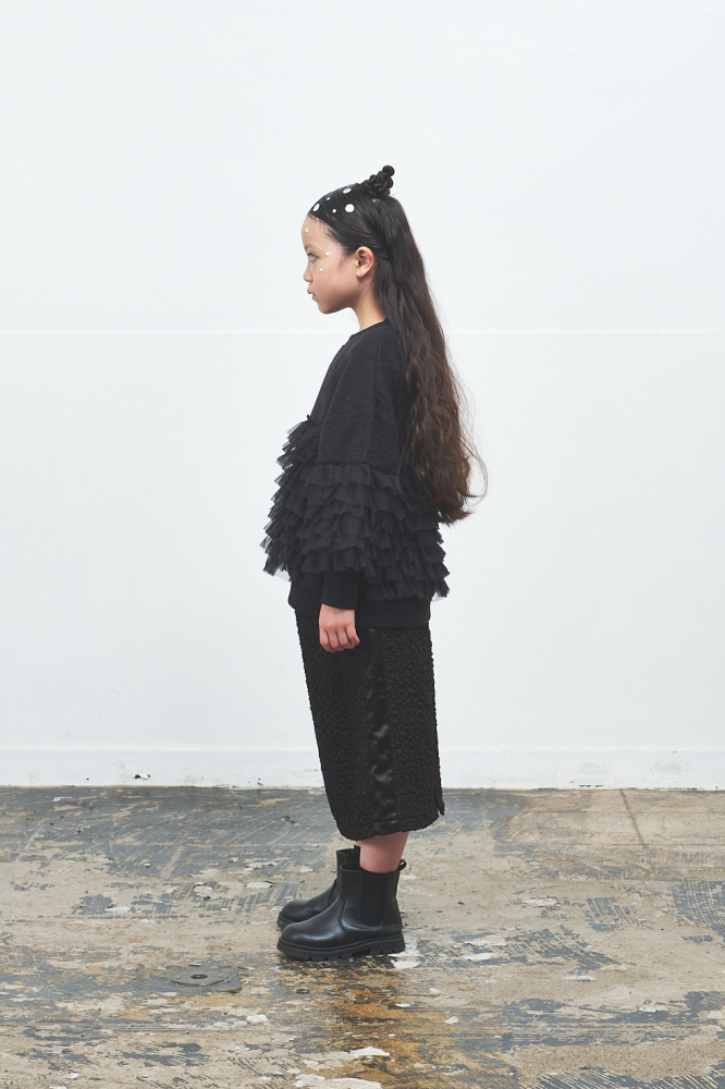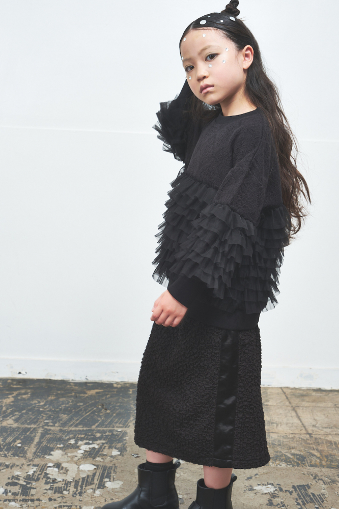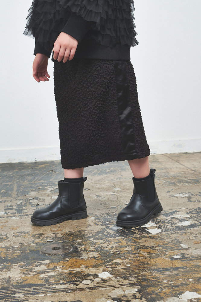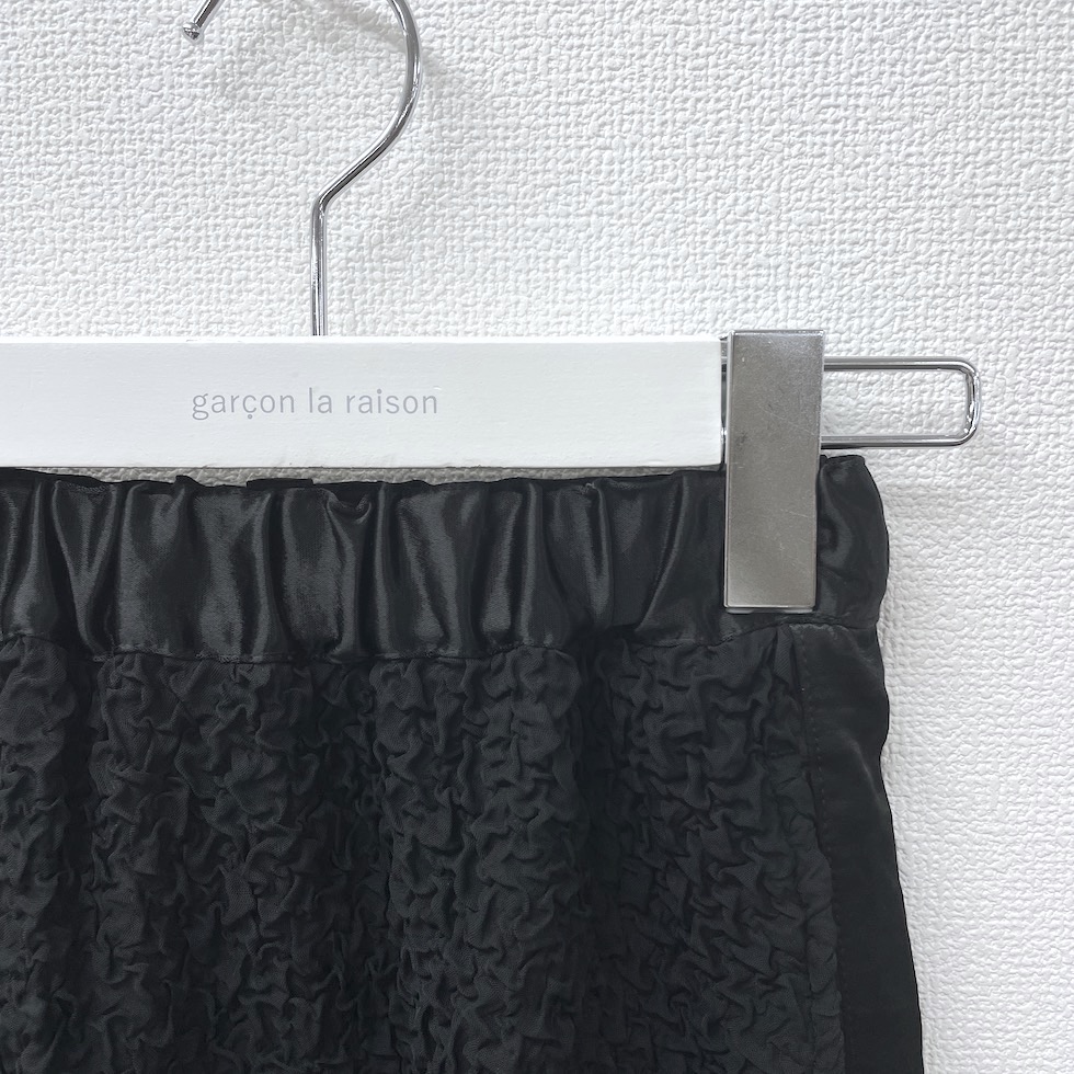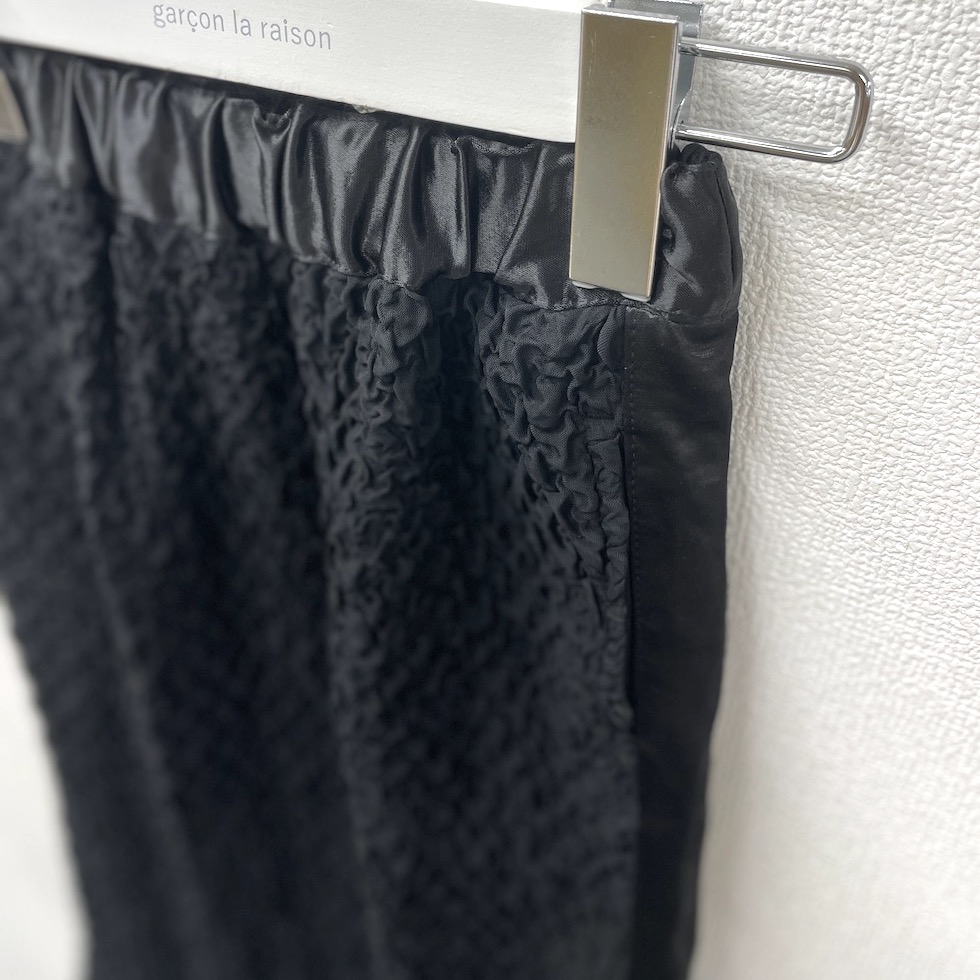 ふっくらと凹凸のあるフクレ素材を使用した、存在感たっぷりのサイドラインタイトスカート。両サイドには、光沢感のあるメタリックラインをあしらい、シンプルながらもエッジの効いたデザインに仕上げています。ストレートに落ちるシルエットが縦のラインを強調し、すっきり見せを叶えてくれます。ウエストはゴム仕様で快適な履き心地でありつつ、バックにはスリット入りで動きやすさも◎同じメタリックラインをあしらったトップスとのセットアップもおすすめです♪