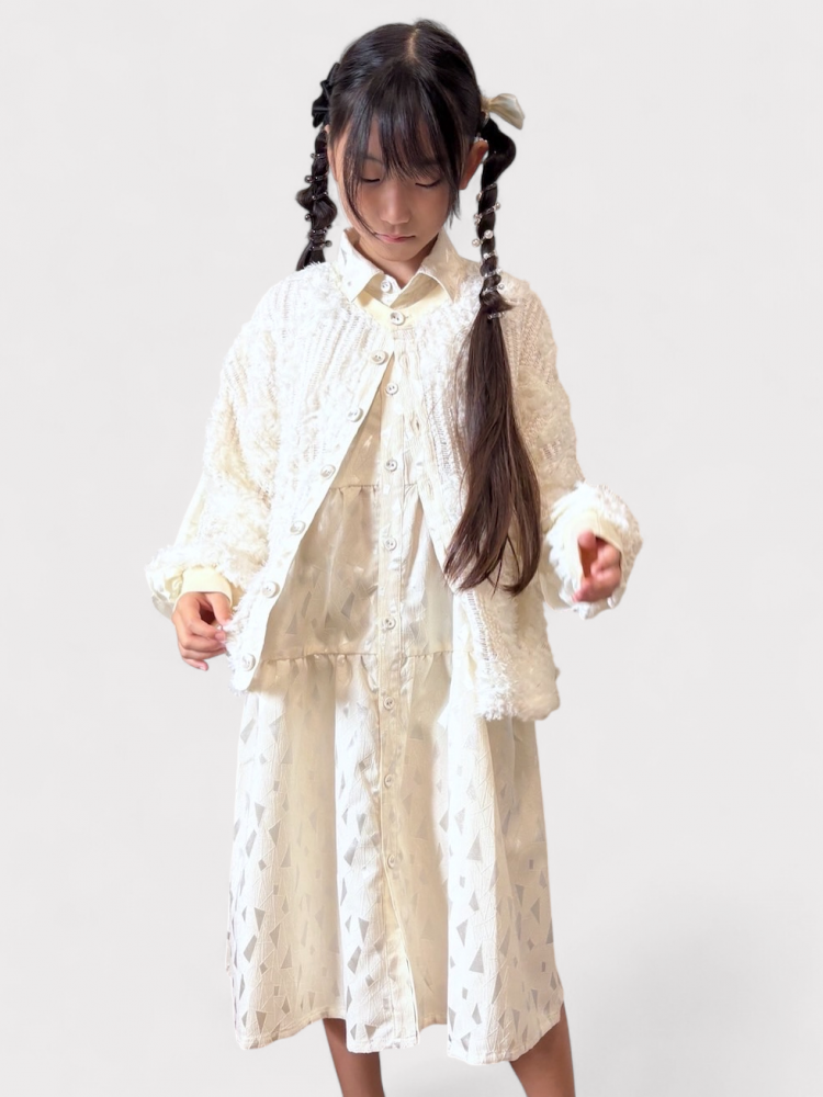 肩や身頃はすっきり、裾にかけて広がるティアードシルエットが、動きと軽やかさをプラス。一枚でも羽織りとしても着られる、万能アイテムです。