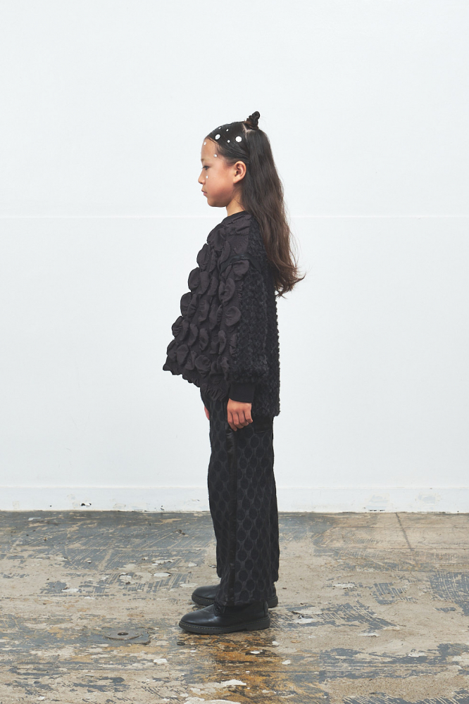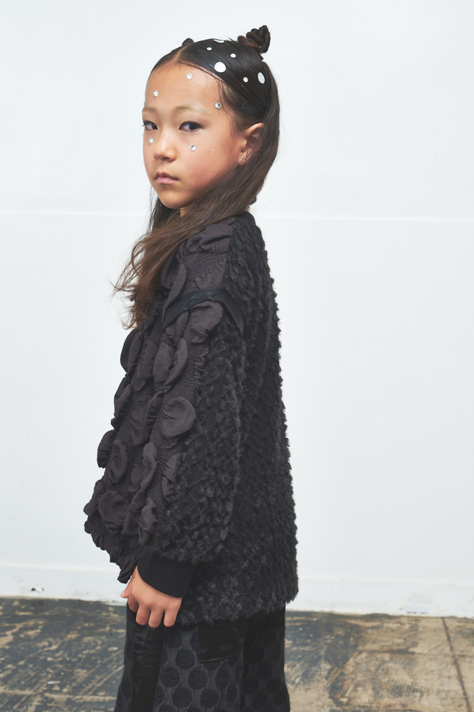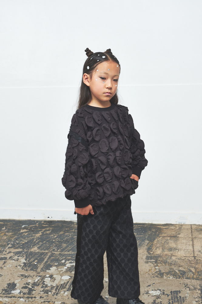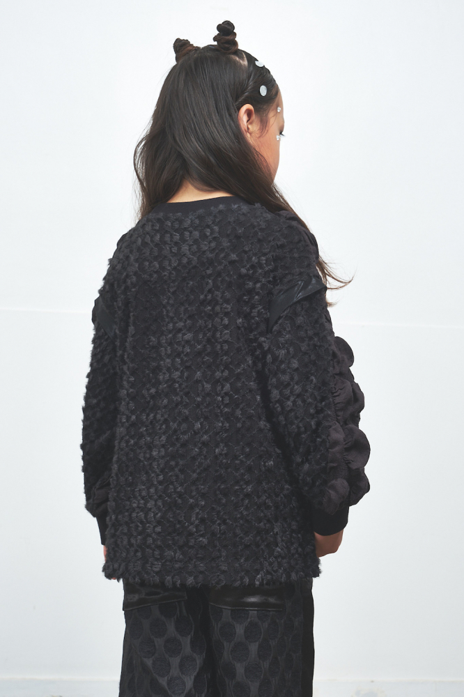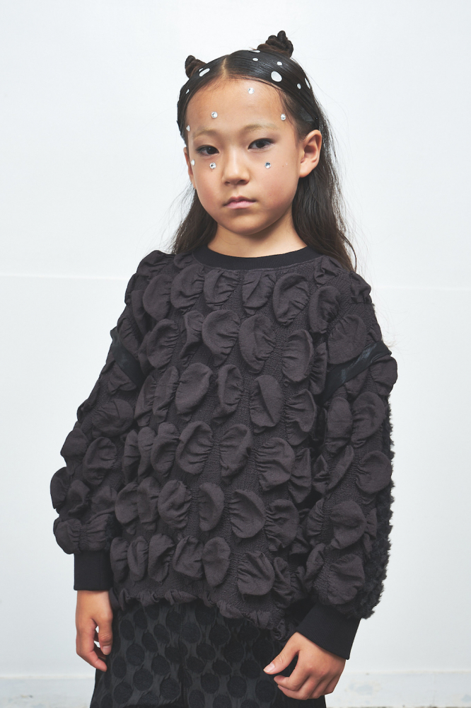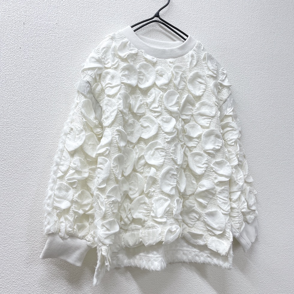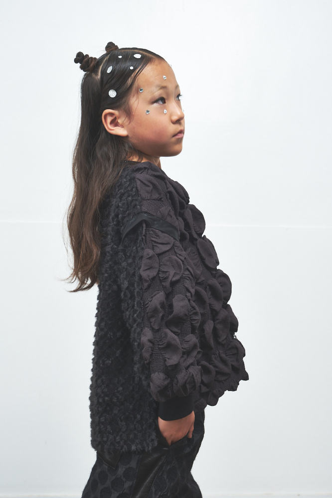 トレンド感のある異素材切り替えと立体的な表情が魅力のボックストレーナーです。フロントはオーバルフクレ素材(立体的な楕円形の凹凸が特徴)を採用し、シンプルな中にも存在感のあるユニークな表情をプラス。背面は柔らかくふわっとしたポイントファー仕様で暖かさと高級感のある仕上がりに。袖の切り替え部分には、挟み込んだメタルネット素材が、さり気ないメタリックな輝きと異素材感で、全体の印象を引き締めモードな雰囲気を演出します。