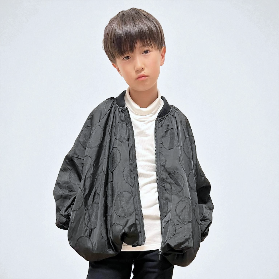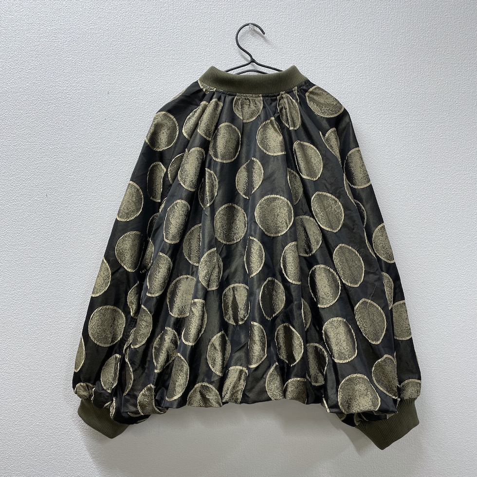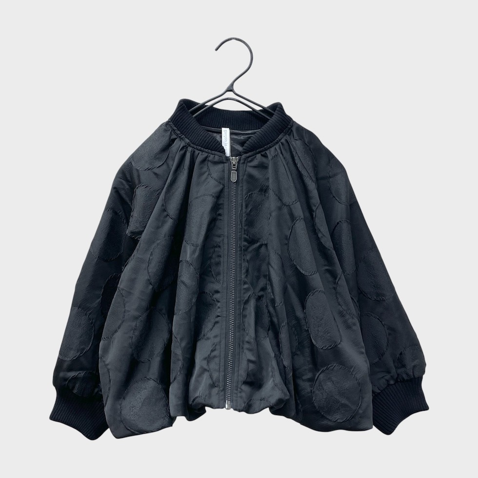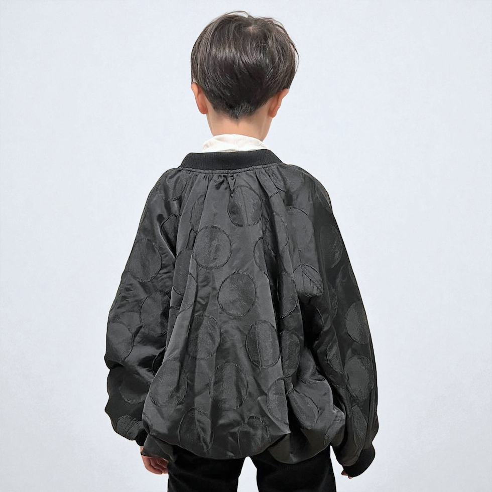 立体感のあるサークル柄に、メタリックな素材感が加わり、光の当たり方で表情が変わる華やかな一着。