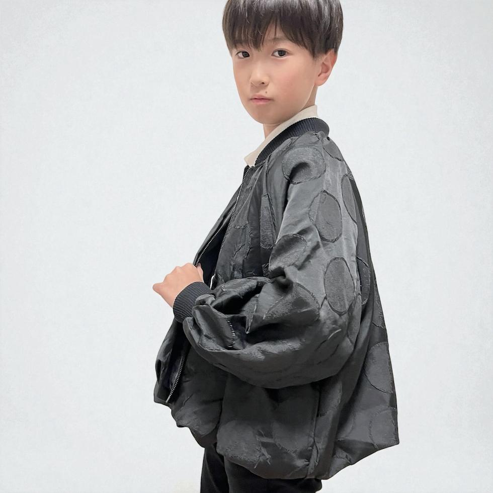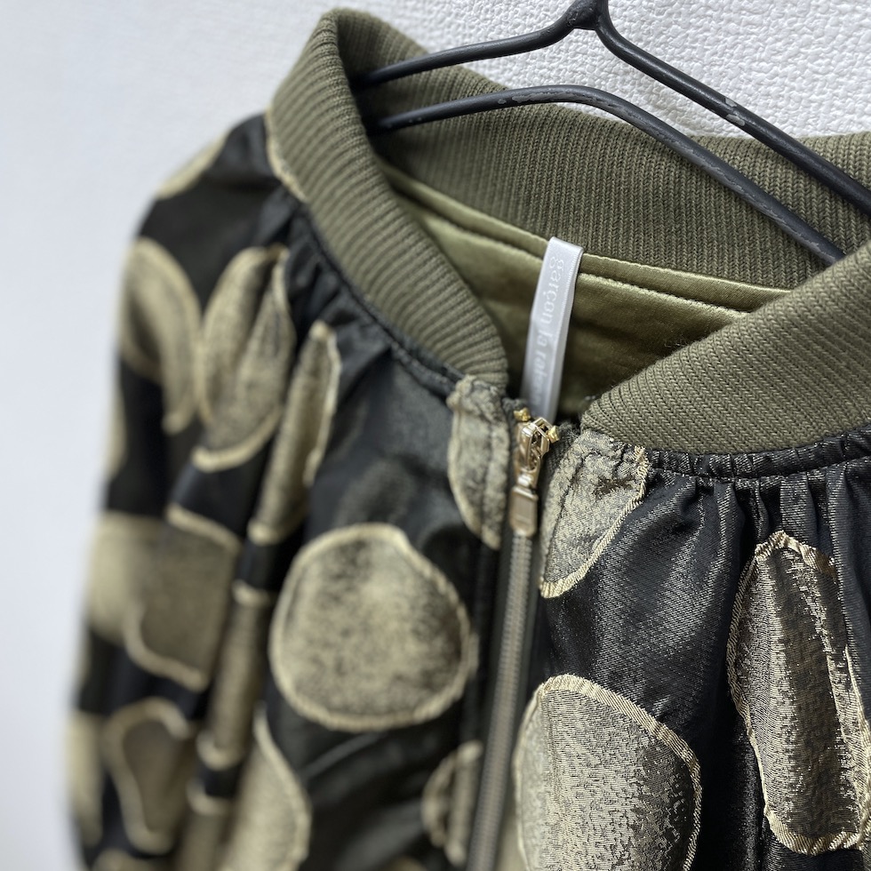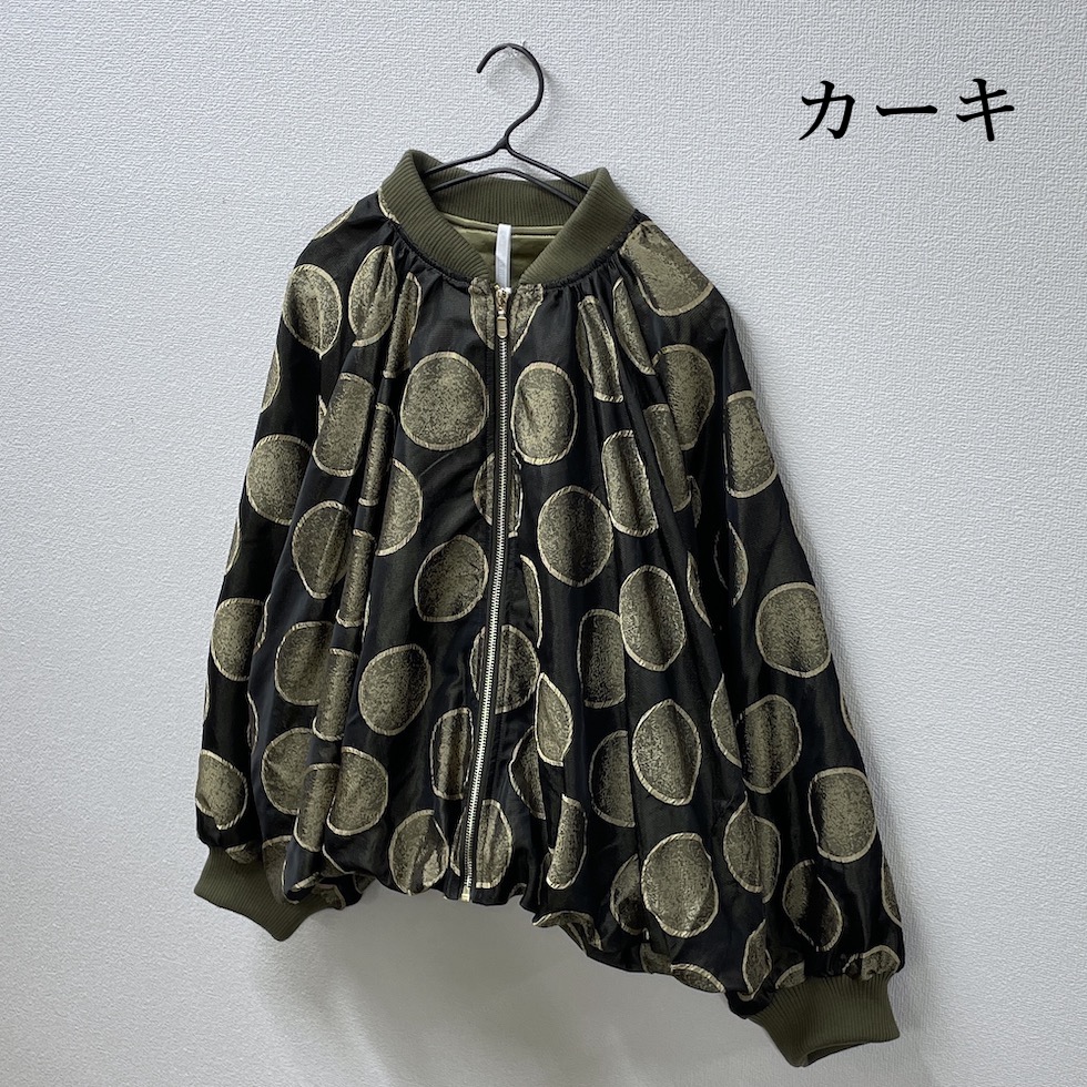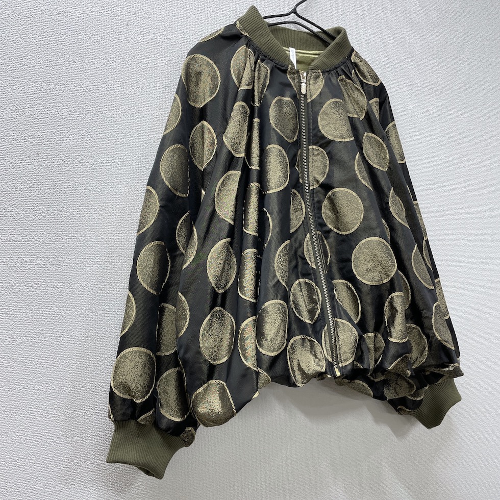 立体感のあるサークル柄に、メタリックな素材感が加わり、光の当たり方で表情が変わる華やかな一着。