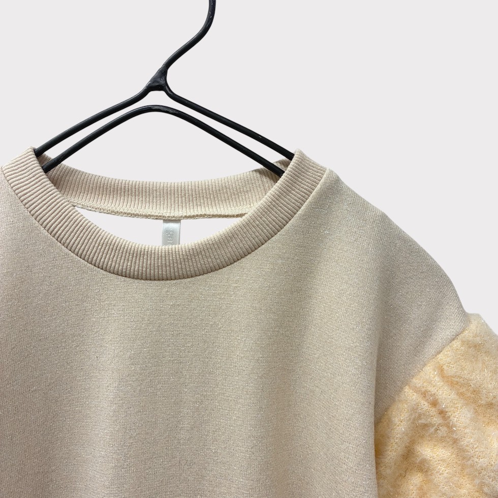 【素材】<本体>綿60%、ポリエステル20%、ナイロン15%、ポリウレタン5% <リブ部分>綿95%、ポリウレタン5% <裾部分>合成皮革 <袖切替え部分>ポリエステル77%、レーヨン20%、ポリウレタン3%