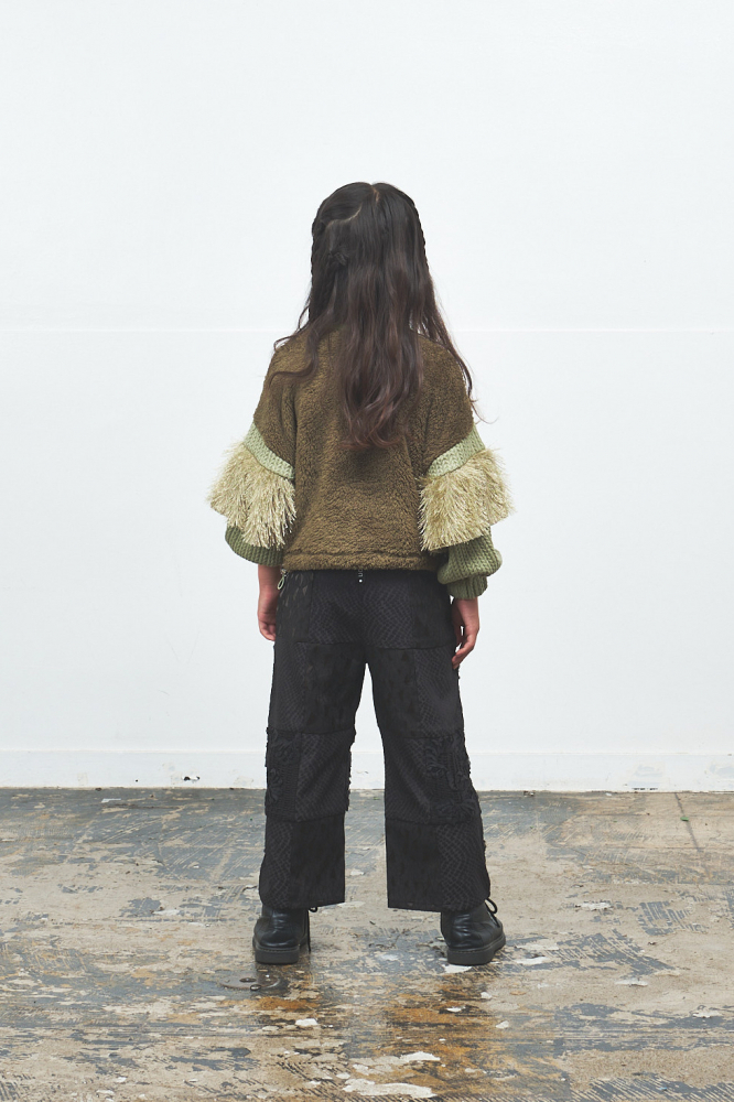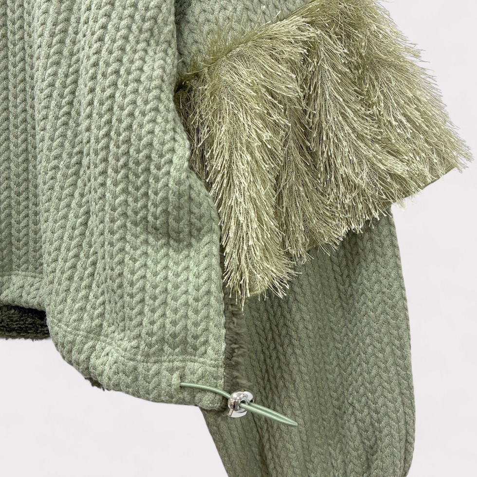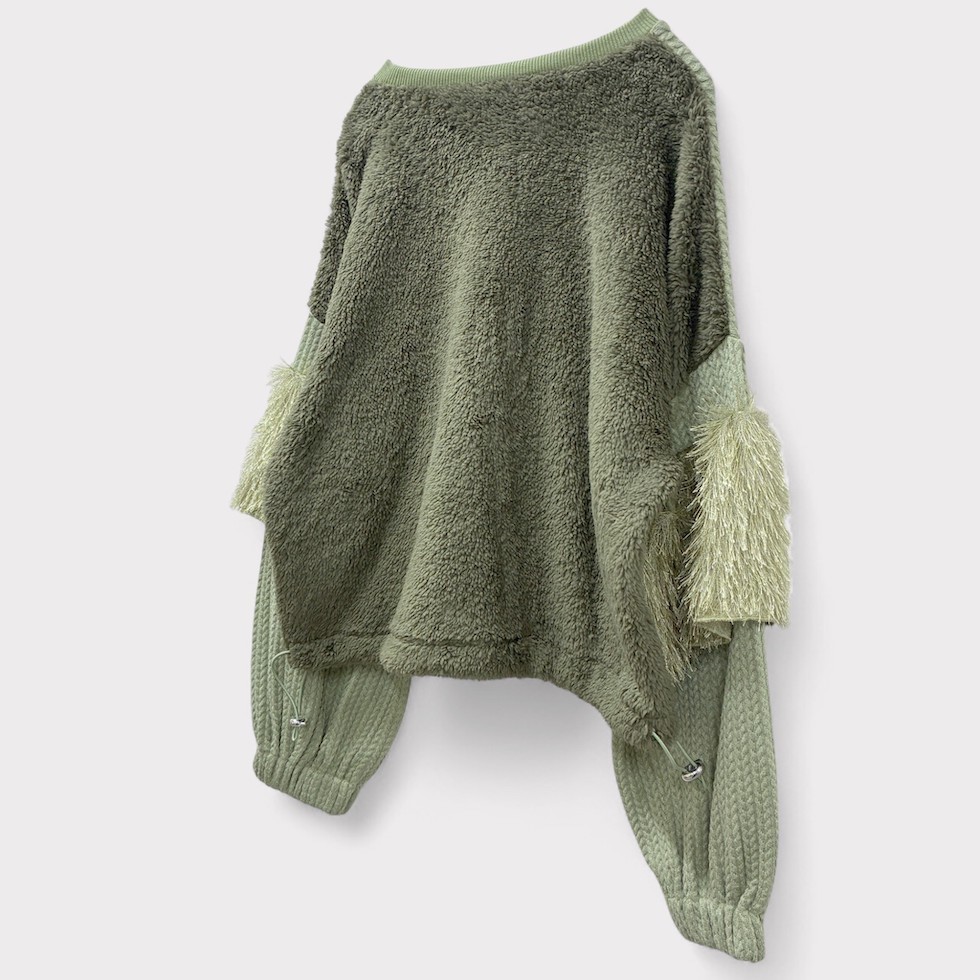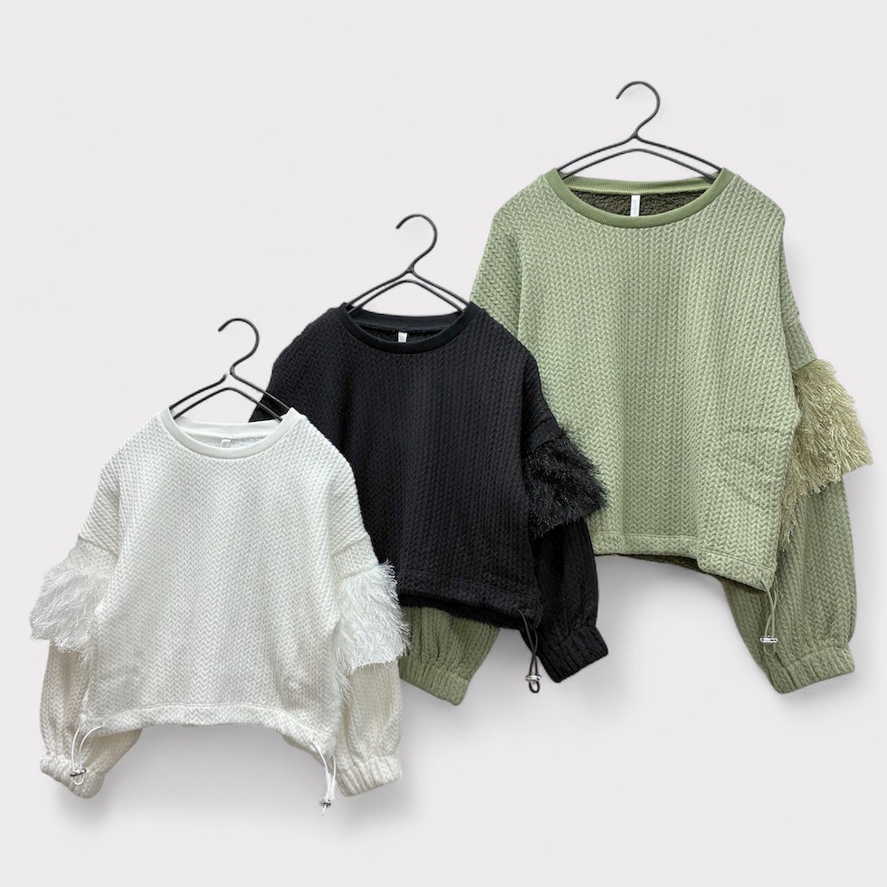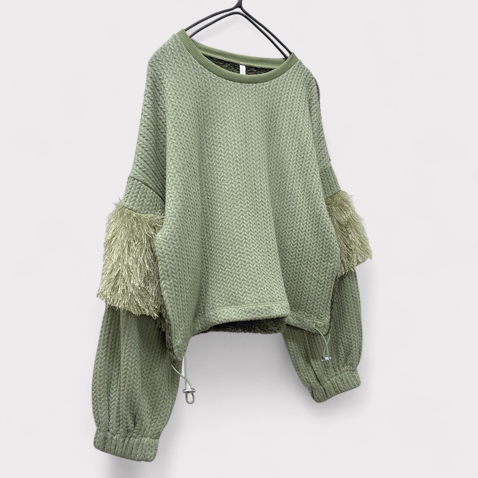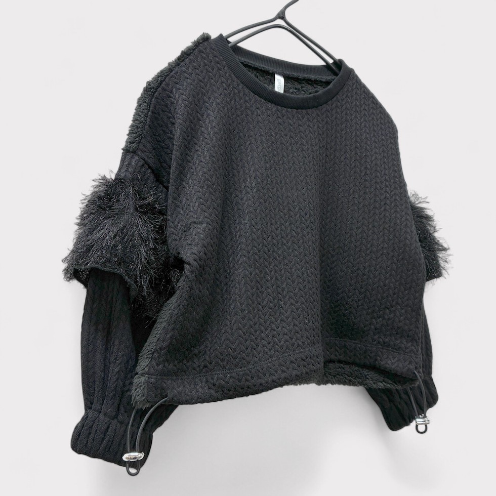 ふっくらとしたバルーンスリーブにフリルが特徴的なフリルスリーブプルオーバー。本体生地にはヘリンボーン、背面にはボアを使用し、温かみのある素材感で秋冬大活躍間違いなしのアイテムです。ショート丈なので、ワイドパンツやボリュームのあるスカートとも相性抜群!ボトムスとのワンツーコーデでサマになります。