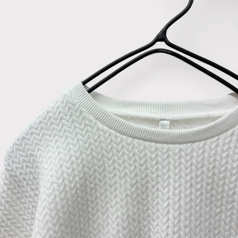 【素材】<本体>レーヨン49%、ポリエステル29% ナイロン20%、ポリウレタン2% <リブ部分>綿95%、ポリウレタン5% <後身頃>ポリエステル100% <袖フリル部分>ポリエステル100%