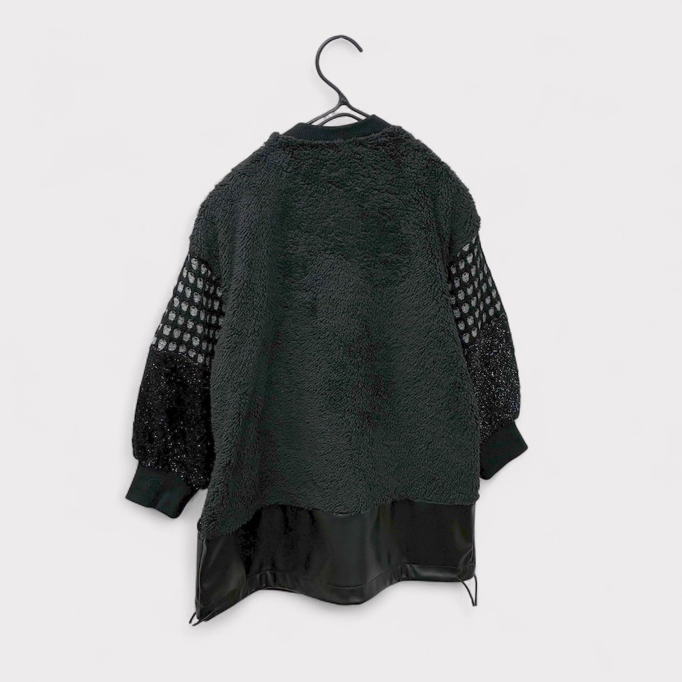 ▶︎モデル着用サイズはこちら【素材】<本体>ポリエステル77%、レーヨン20%、ポリウレタン3% <リブ部分>綿95%、ポリウレタン5% <後身頃>ポリエステル100% <裾切り替え部分>合成皮革 <袖切替え部分>アクリル57%、ポリエステル30%、ウール8% レーヨン5%