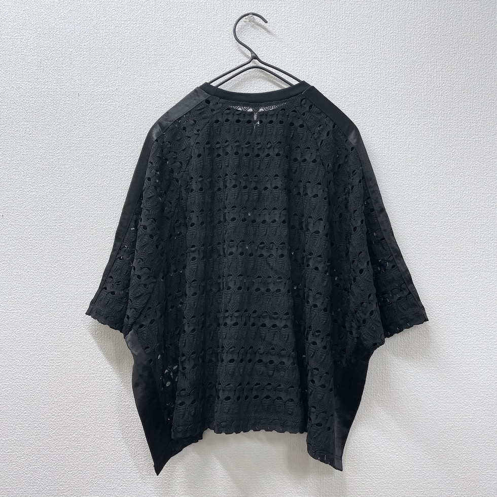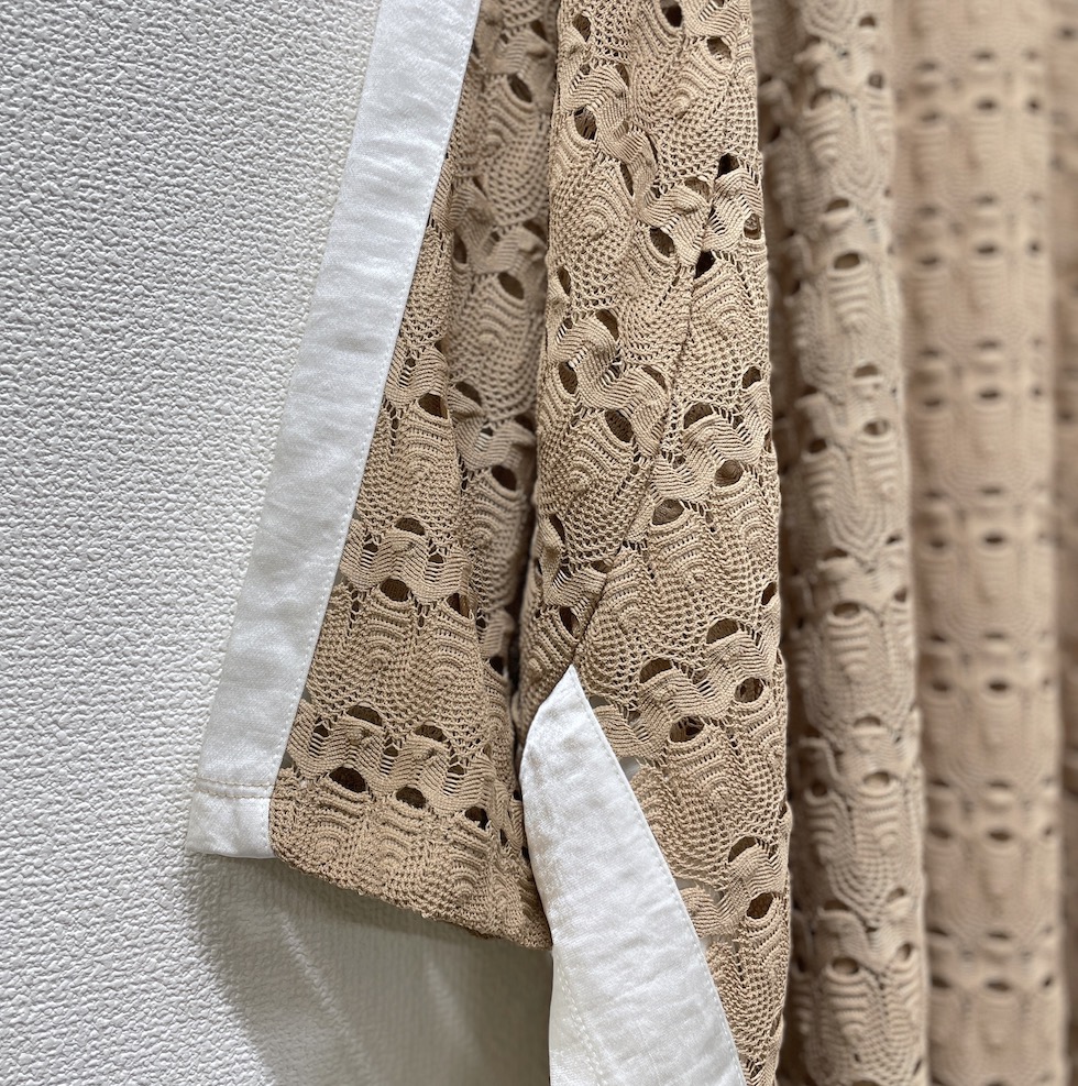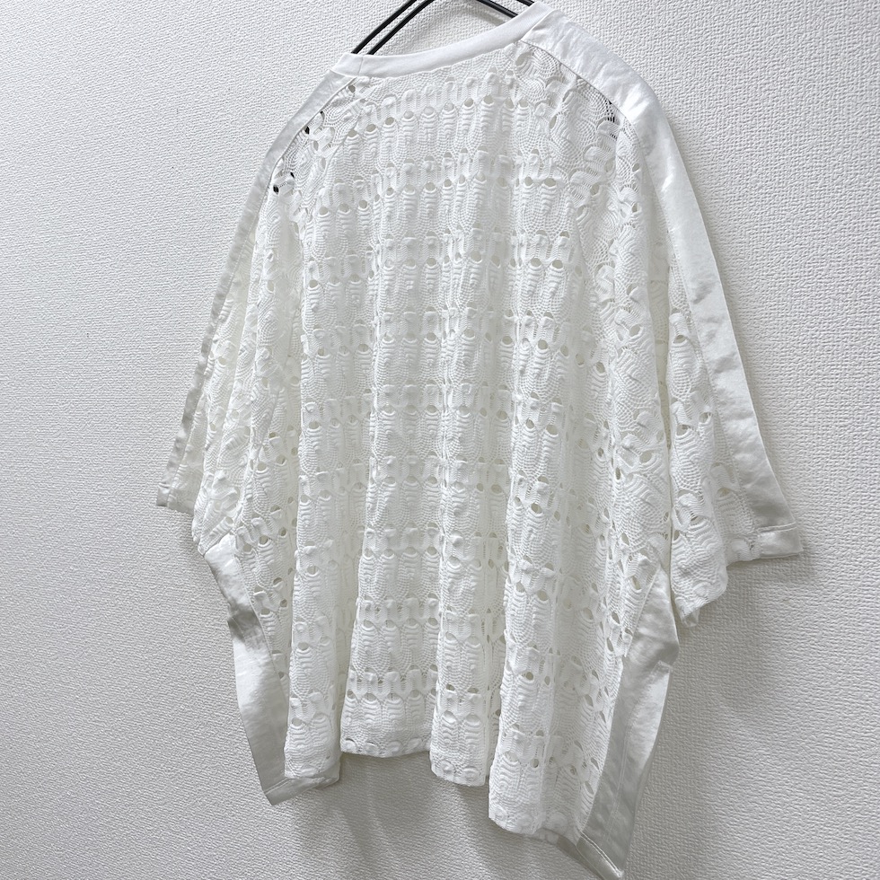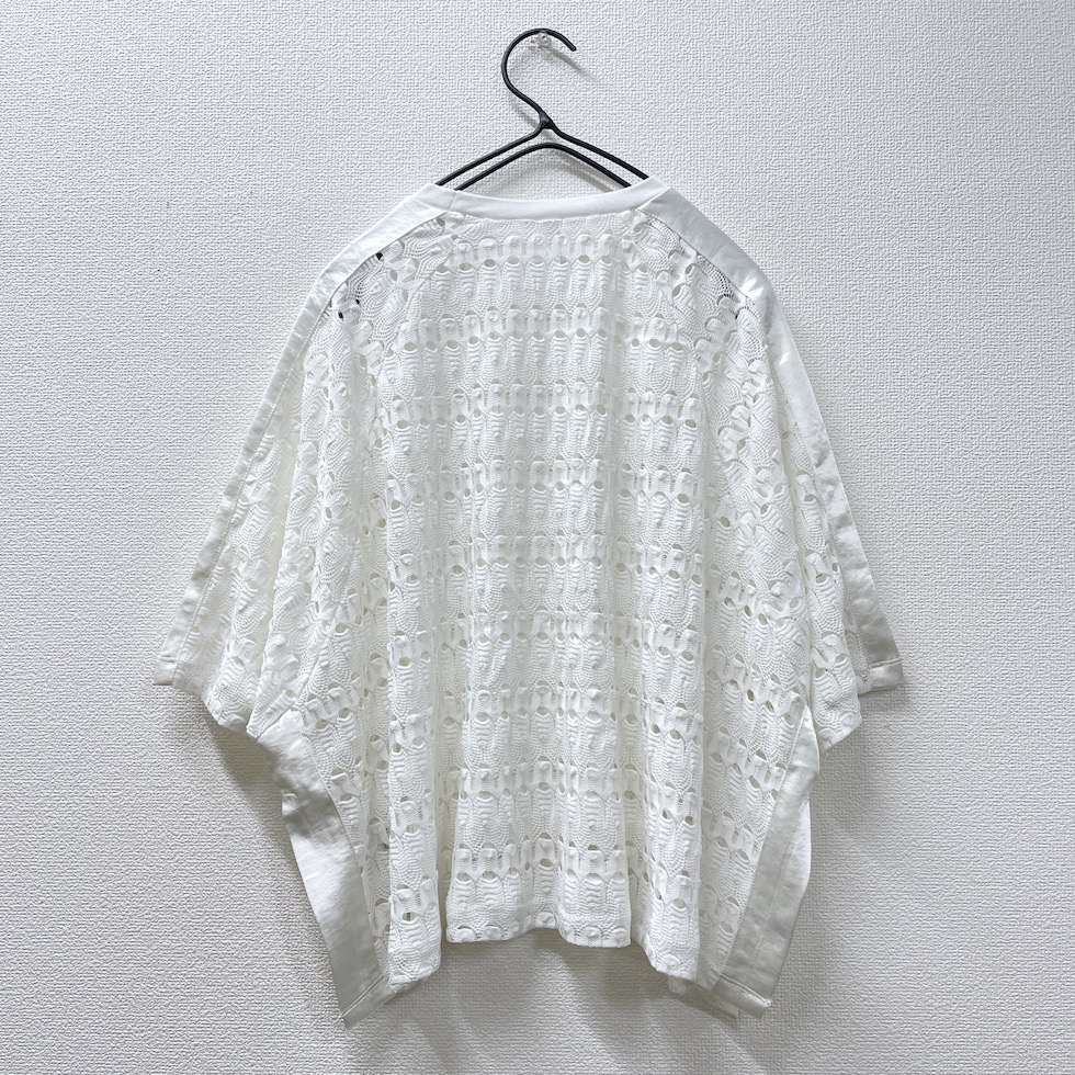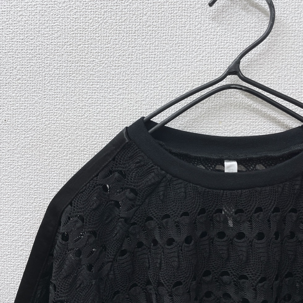 透かし編みのような立体感のある編地に、メタリック素材のラインをあしらったアクセントトップス。