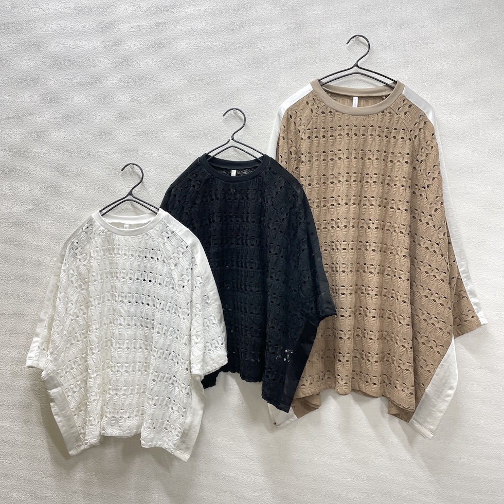 【素材】<本体>ポリエステル65%、綿35% <ネック部分>綿、ポリウレタン <切替え部分>ポリエステル100%