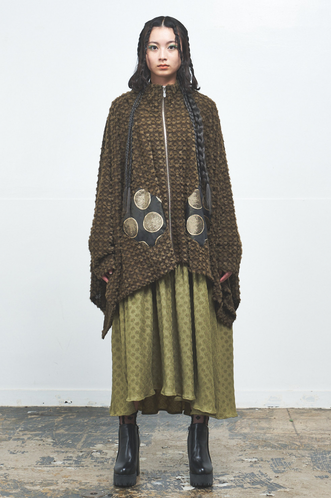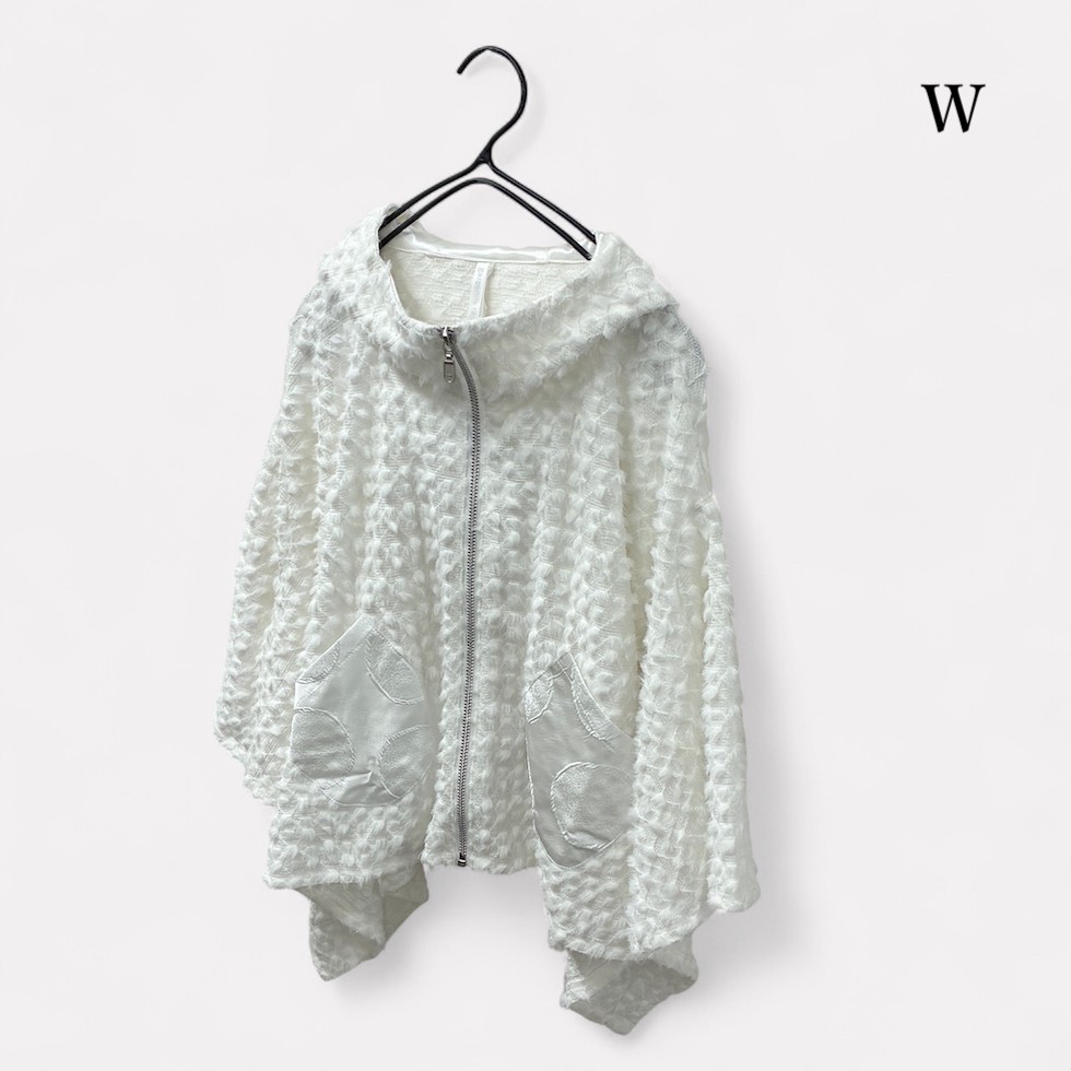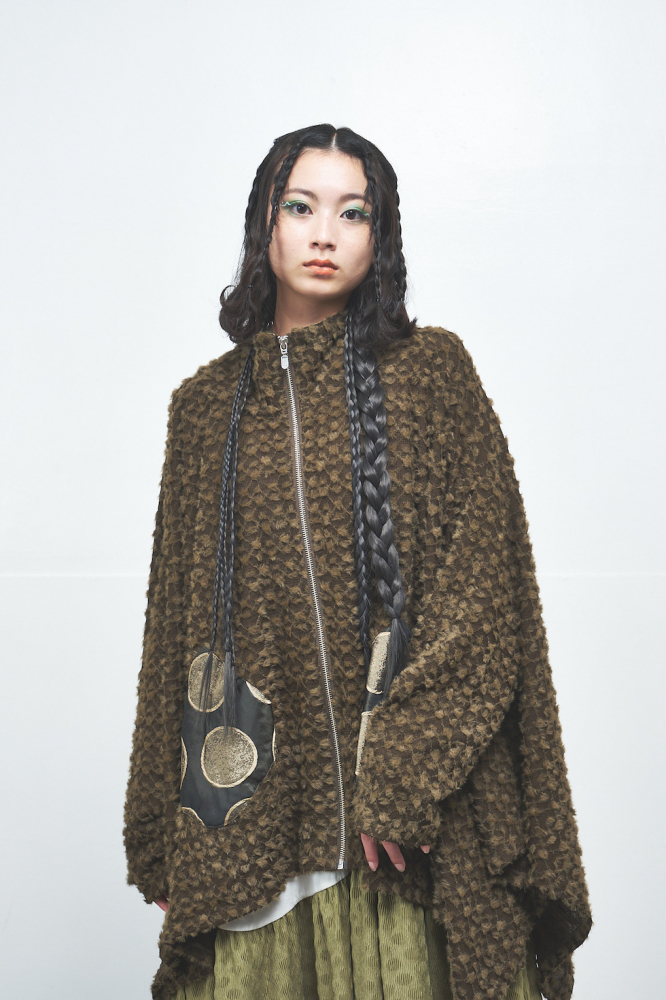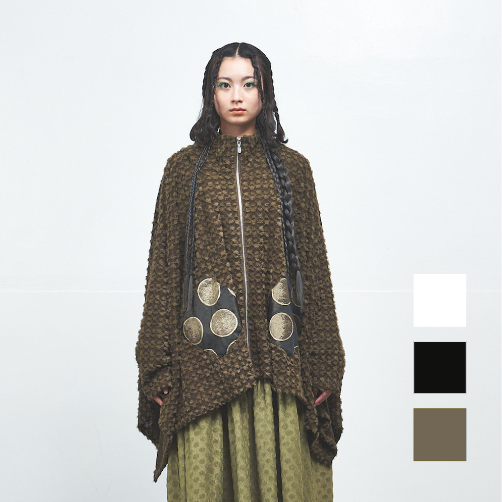 柔らかくふわふわとしたポイントファー素材を全体に使用し、ゆったりしたドルマンスリーブとリラックス感のある着心地が魅力のドルマンパーカー。フロントのポケット部分にはメタリックなサークル柄素材をあしらい、遊び心と華やかさをプラス。フードの裏地にもメタリック素材が使用されており、着脱時やふとした動作でもきらめきが感じられます。一点投入でこなれ感が生まれ、存在感たっぷりのアイテムです。