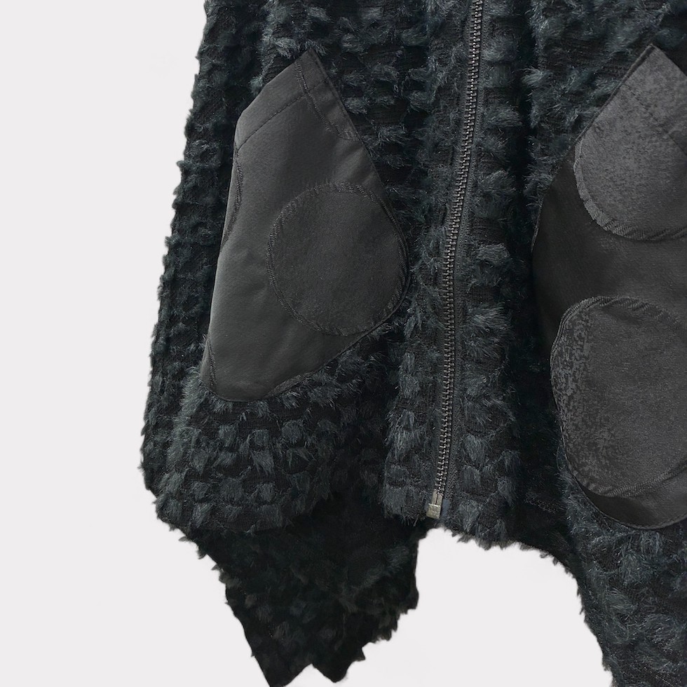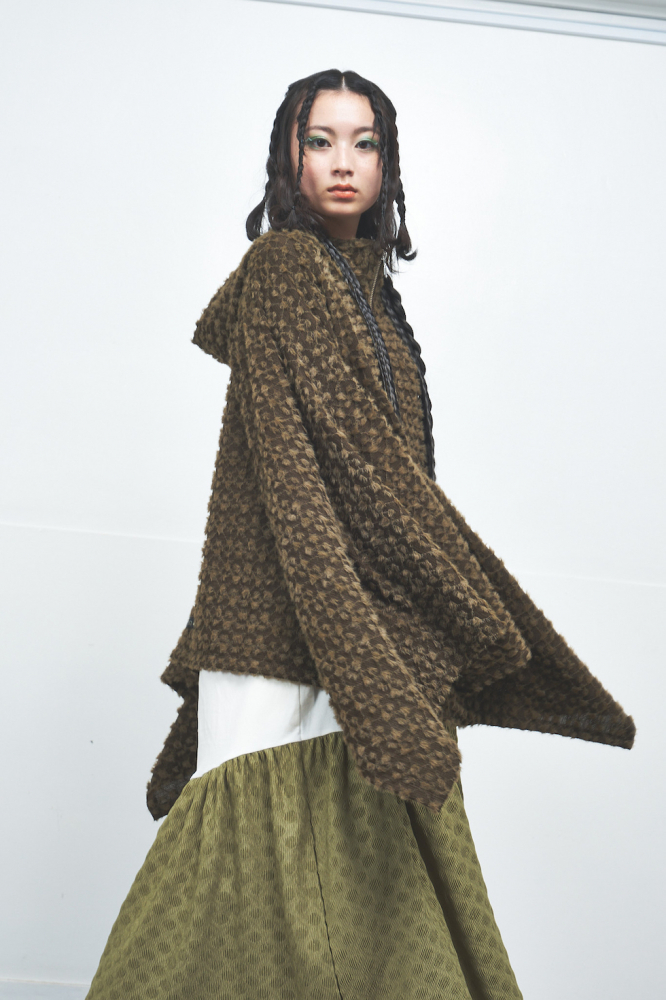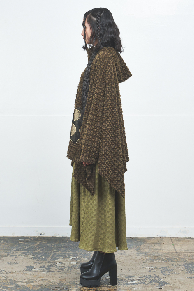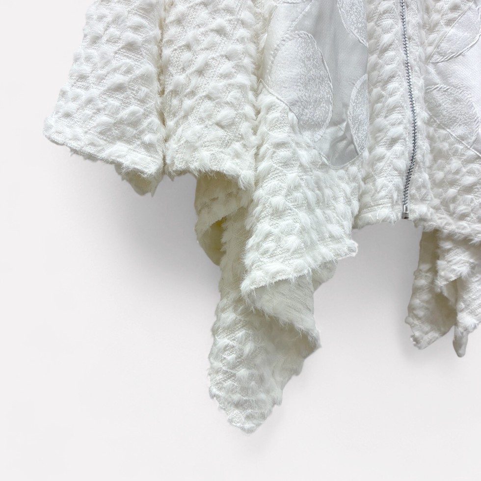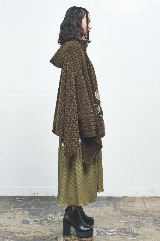 柔らかくふわふわとしたポイントファー素材を全体に使用し、ゆったりしたドルマンスリーブとリラックス感のある着心地が魅力のドルマンパーカー。フロントのポケット部分にはメタリックなサークル柄素材をあしらい、遊び心と華やかさをプラス。フードの裏地にもメタリック素材が使用されており、着脱時やふとした動作でもきらめきが感じられます。一点投入でこなれ感が生まれ、存在感たっぷりのアイテムです。