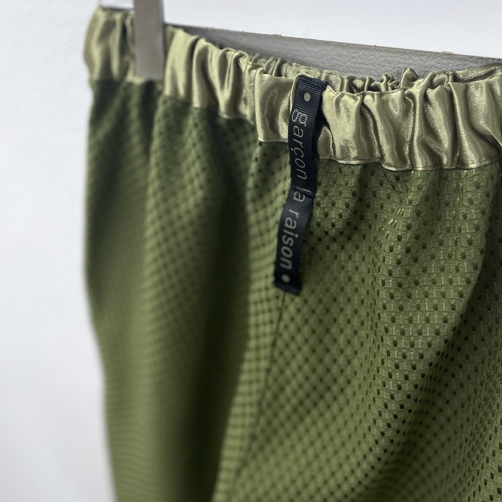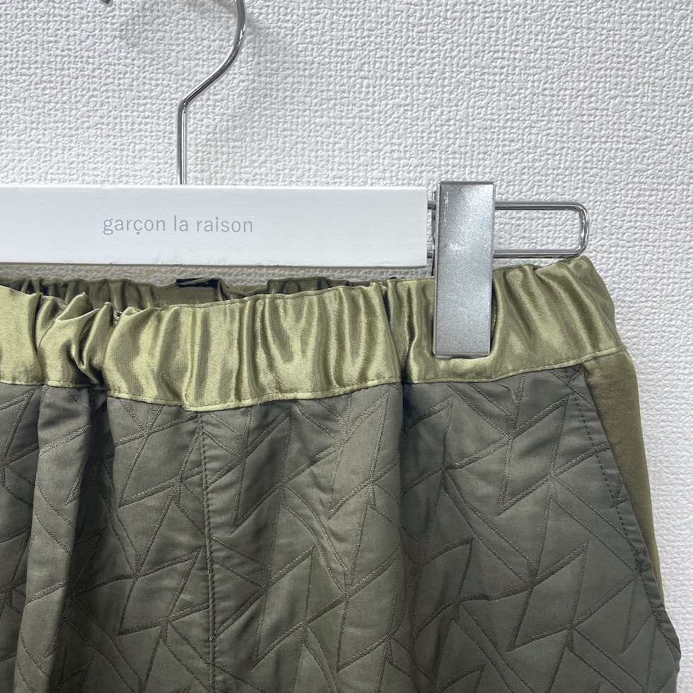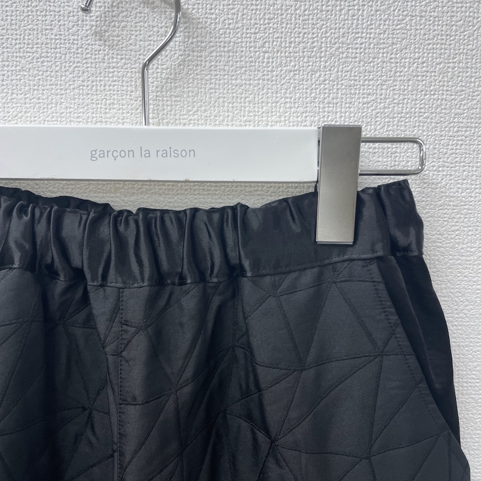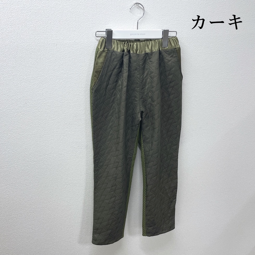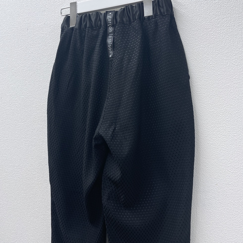 表情のある幾何学キルト素材と、バックスタイルにアクセントを効かせるブロックライン生地を切り替えたテーパードパンツ。異素材のコントラストで、シンプルな中にもひとクセあるモード感を演出します。ウエストは総ゴム仕様でリラックスした履き心地&脇ポケット付きで実用性も◎前後で表情が異なり、カジュアルながらも上品さを忘れない一本。スウェット感覚で取り入れられる、きれいめテーパードです。