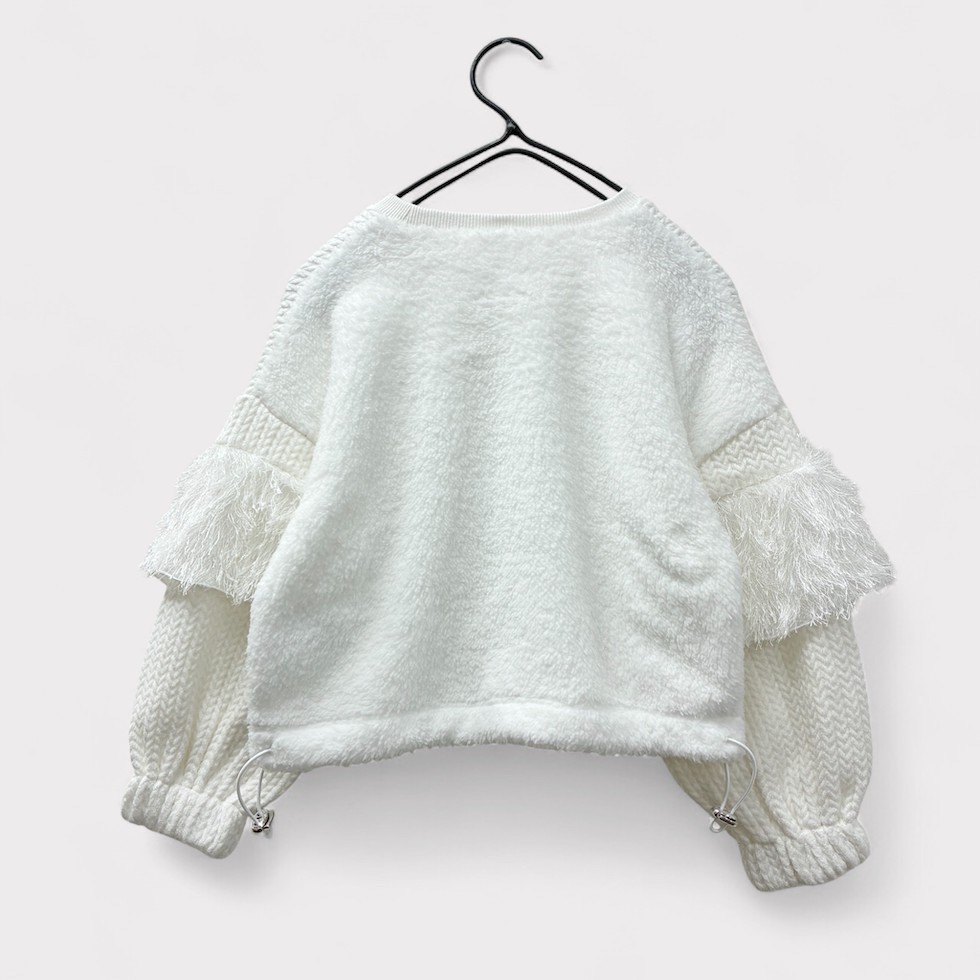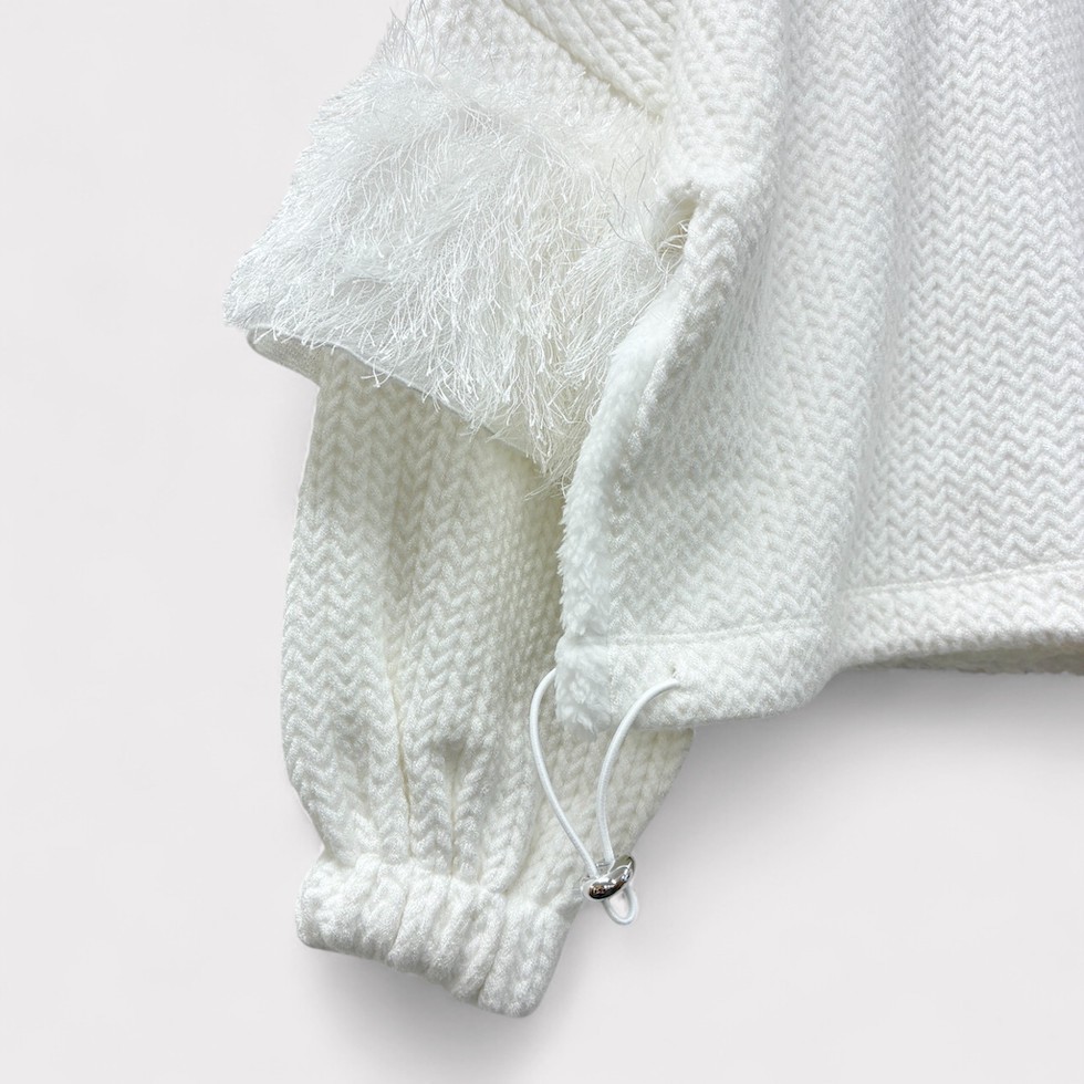 ふっくらとしたバルーンスリーブにフリルが特徴的なフリルスリーブプルオーバー。本体生地にはヘリンボーン、背面にはボアを使用し、温かみのある素材感で秋冬大活躍間違いなしのアイテムです。ショート丈なので、ワイドパンツやボリュームのあるスカートとも相性抜群!ボトムスとのワンツーコーデでサマになります。