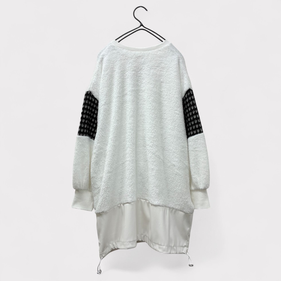 【素材】<本体>ポリエステル77%、レーヨン20%、ポリウレタン3% <リブ部分>綿95%、ポリウレタン5% <後身頃>ポリエステル100% <裾切り替え部分>合成皮革 <袖切替え部分>アクリル57%、ポリエステル30%、ウール8% レーヨン5%