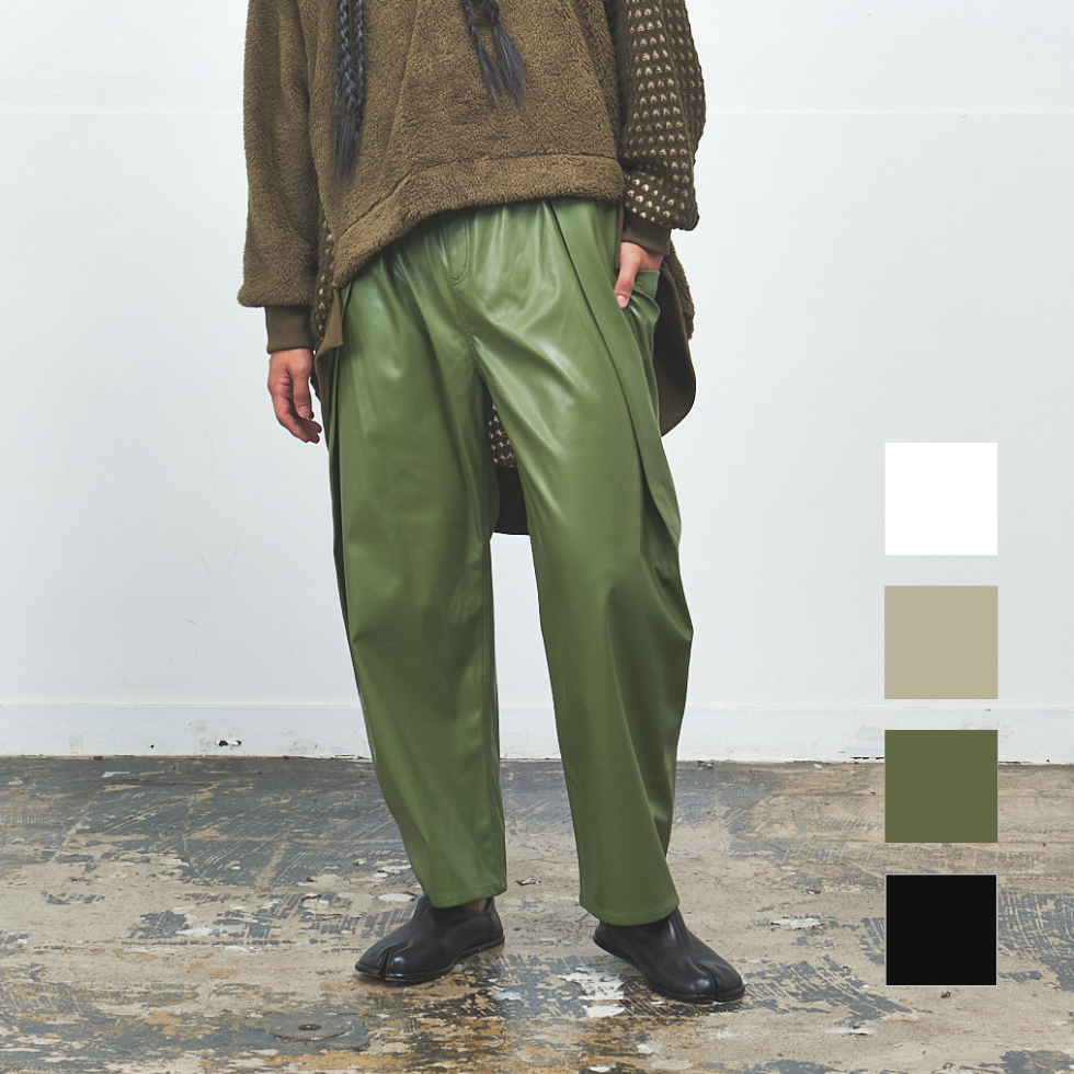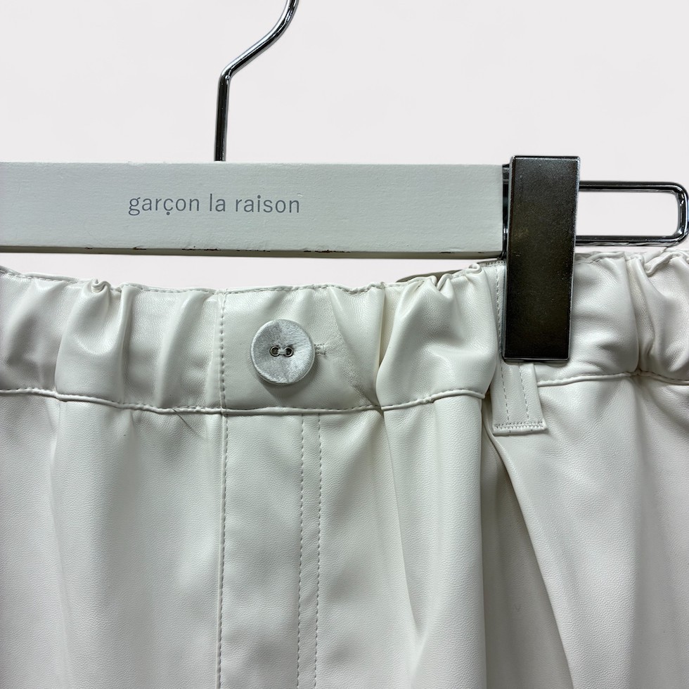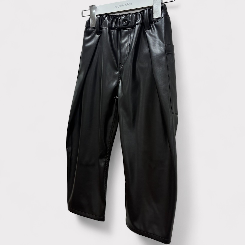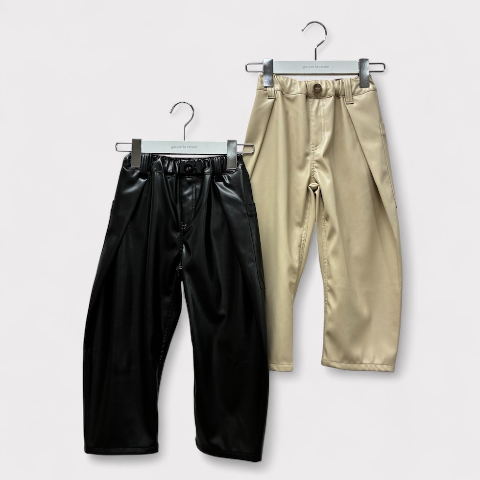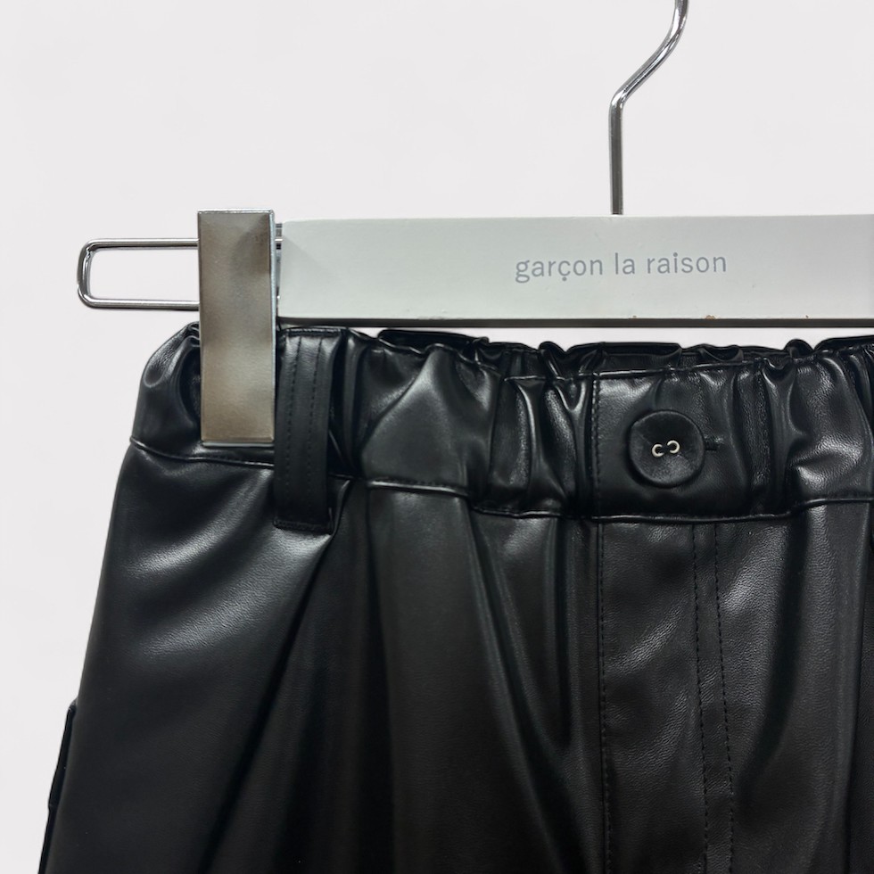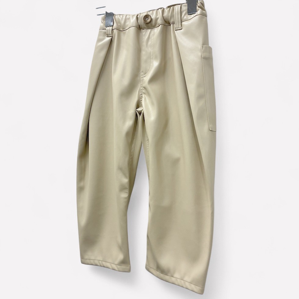 今季注目のフェイクレザーのタックワイドパンツは、取り入れるだけで旬な着こなしが叶うアイテム。ハリ感のある質感と滑らかな表面感がモードな雰囲気を演出します。ソフトな穿き心地も嬉しいポイント◎フロントに入れた深めのタックが立体感を生み出し、リラックス感がありながらも構築的なシルエットに。レザー特有の存在感が、ベーシックなカットソーやニットを合わせるだけでサマになります。同素材のバルーンスリーブジャケットとセットアップでの着用も可能。シャツやベストでモードにまとめるのもアリです♪